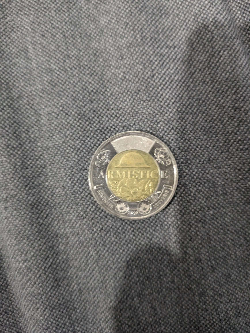 Special canadian Armistice toonie $5.00. I might have more by the time you want to buy one or more. If you buy more than one I can make you a deal. You can pick which one you prefer. You must meet me at Sutherland Secondary school.