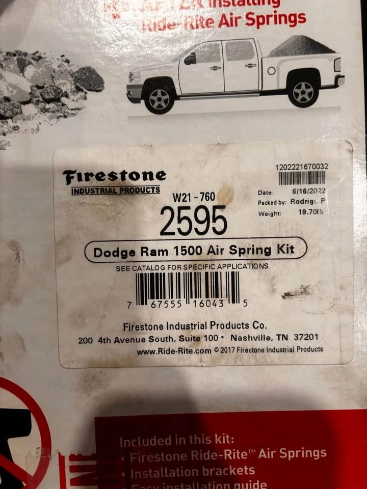 Firestone Ride-Rite rear air spring kit fits 2010-2025 Ram 1500. Replaces coil springs with air ride. Let me know if you're interested!