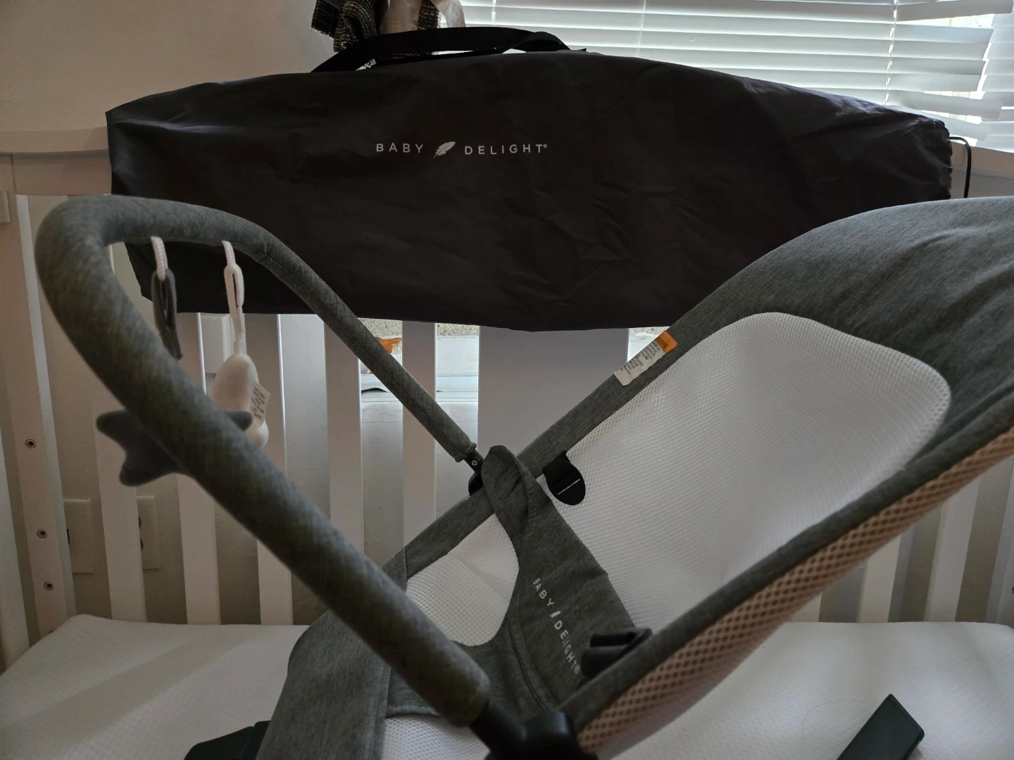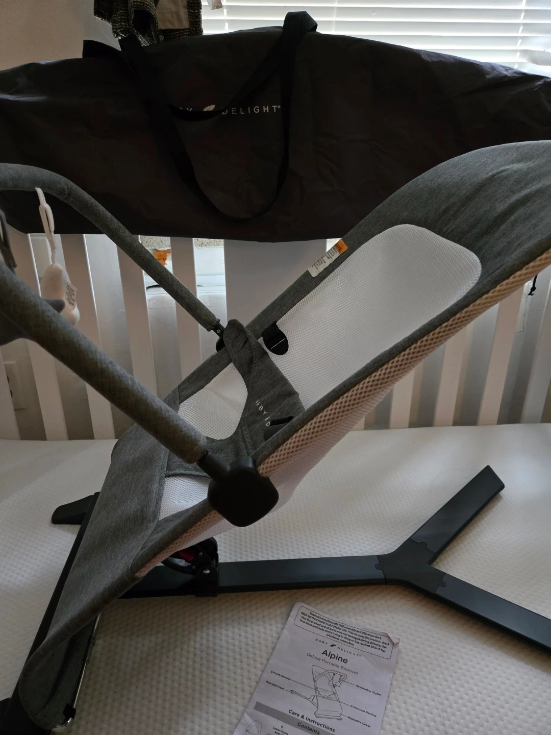 Selling a Baby Delight Alpine Deluxe Portable Bouncer. It's in great condition and comes with its original carry bag. Perfect for keeping your little one comfy and entertained!