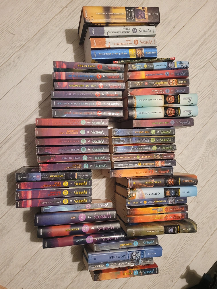 Selling a collection of Warriors books by Erin Hunter! These books are from various series including Omen of the Stars, Super Edition, Dawn of the Clans, and more. Great for any Warriors fan looking to expand their collection. missing a few books from starless clan, new prophecy begins and dawn of the clans a d the first book ever. Almost a full collection. 10 books are hardcover, the rest are softcover.