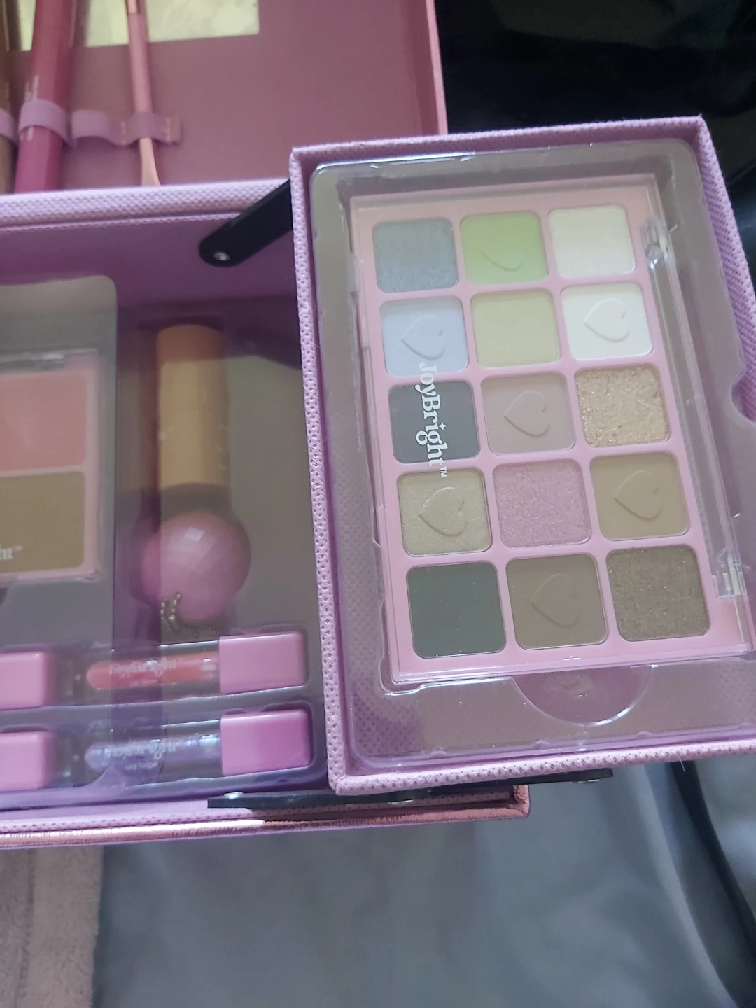 This JoyBright makeup set comes in a pink carrying case with a heart clasp. It includes eyeshadow palettes, blush, lip glosses, and brushes. Perfect for young aspiring makeup artists!