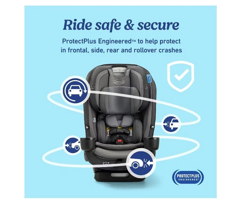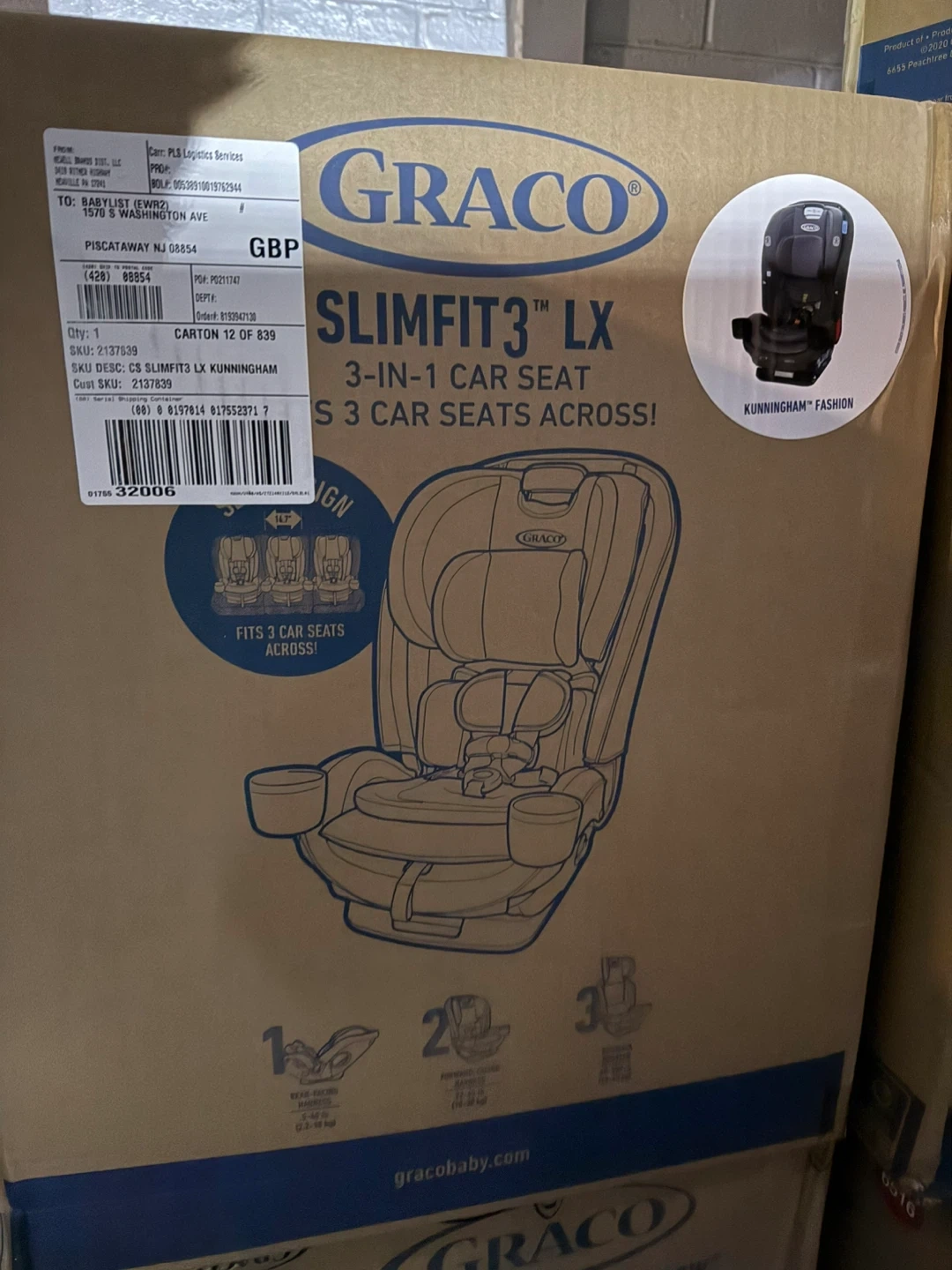 The Graco SlimFit3 LX 3-in-1 Car Seat is our slimmest design that fits 3 car seats across, saving space in your back seat without compromising on safety. This narrow all-in-one car seat grows with your child from rear-facing harness (5-40 lb) to forward-facing harness (26.5-65 lb) to highback booster (40-100 lb). Integrated belt lock-off makes for easy vehicle seat belt installation in forward-facing mode. Graco’s exclusive push-button InRight LATCH provides an easy, one-second attachment with an audible click to help ensure secure installation. The No-Rethread Simply Safe Adjust Harness System allows you to adjust the height of the headrest and harness to 10 positions with just one motion. Easily adjust the 4-position recline for a better installation and a comfortable ride. The Rapid Remove cover comes off in 60 seconds and is machine washable. Breathable mesh AirFlow channels provide improved ventilation. Two cup holders are designed to work with the three-across configuration. Fuss-free harness storage pockets conveniently hold the harness out of the way. Removable, plush head and body inserts help to keep your infant feeling cradled and comfortable. The steel-reinforced frame provides strength and durability, and EPS energy-absorbing foam provides effective impact energy management. This car seat is Graco ProtectPlus Engineered to help protect in frontal, side, rear, and rollover crashes. Feel free to message if you have any questions!