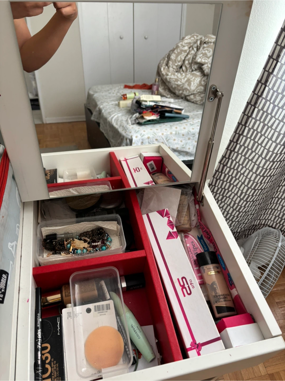 Selling a white IKEA Malm dressing table. It's in great condition and perfect for a small space! This sleek and simple vanity table offers a clean look and practical storage with its smooth-running drawer. It fits nicely in any room and is easy to keep tidy