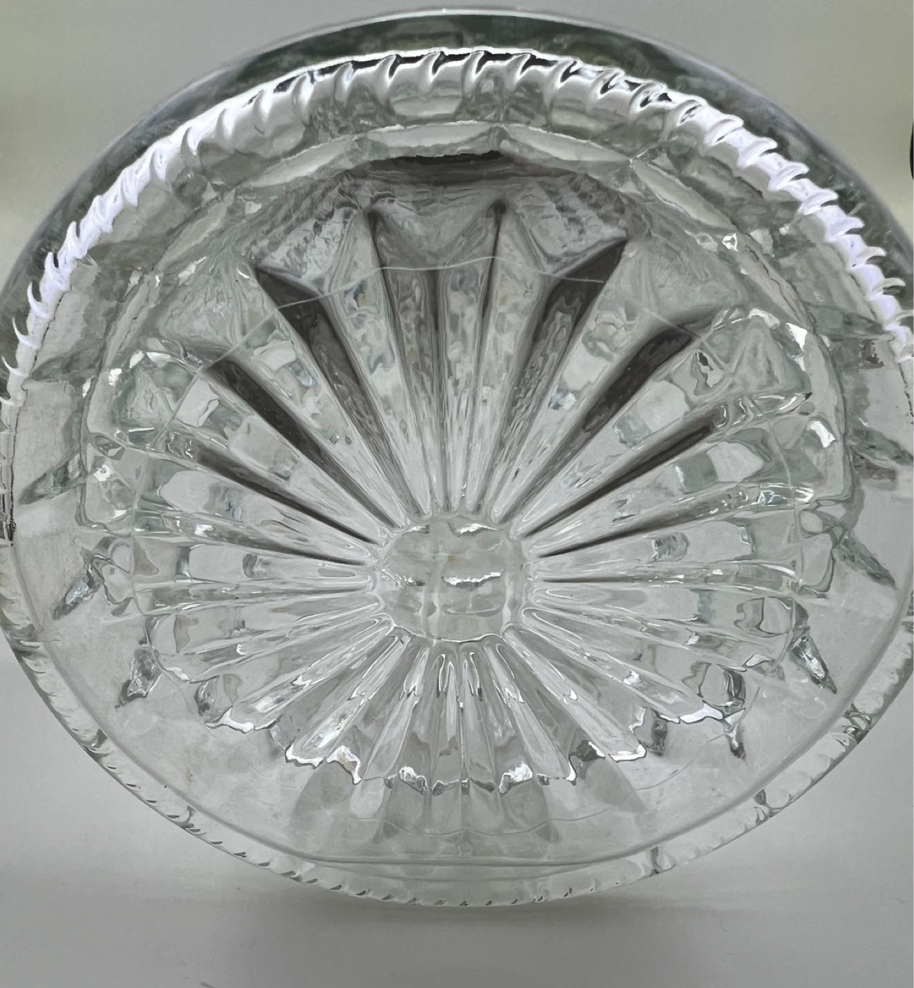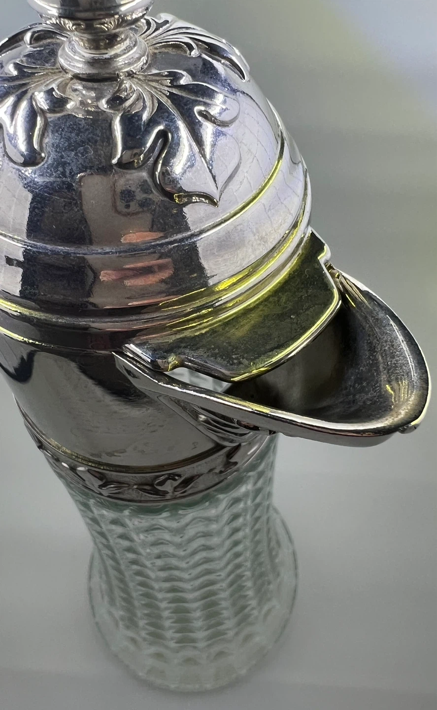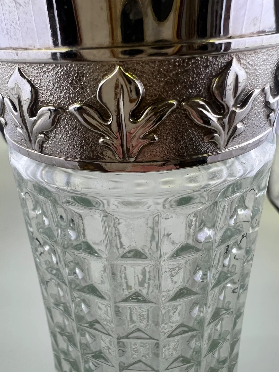A tapered glass body with a textured, quilted diamond pattern and a silver-plated lid, spout, and handle