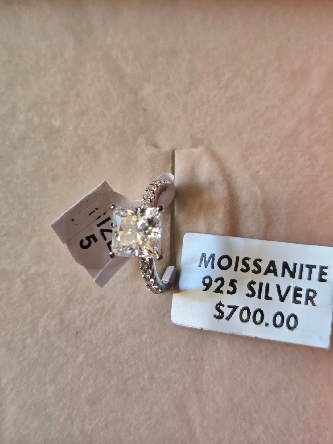 Selling a beautiful moissanite ring 925 silver. The ring is a size 5. Originally bought for $700 1.50ctw