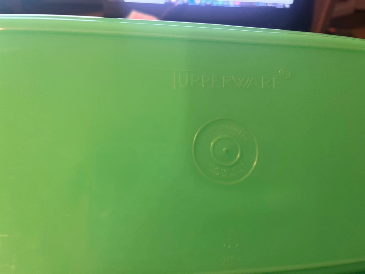 Vintage Tupperware vegetable keeper. Green plastic container with a vented insert and a separate lid. Great for storing vegetables.