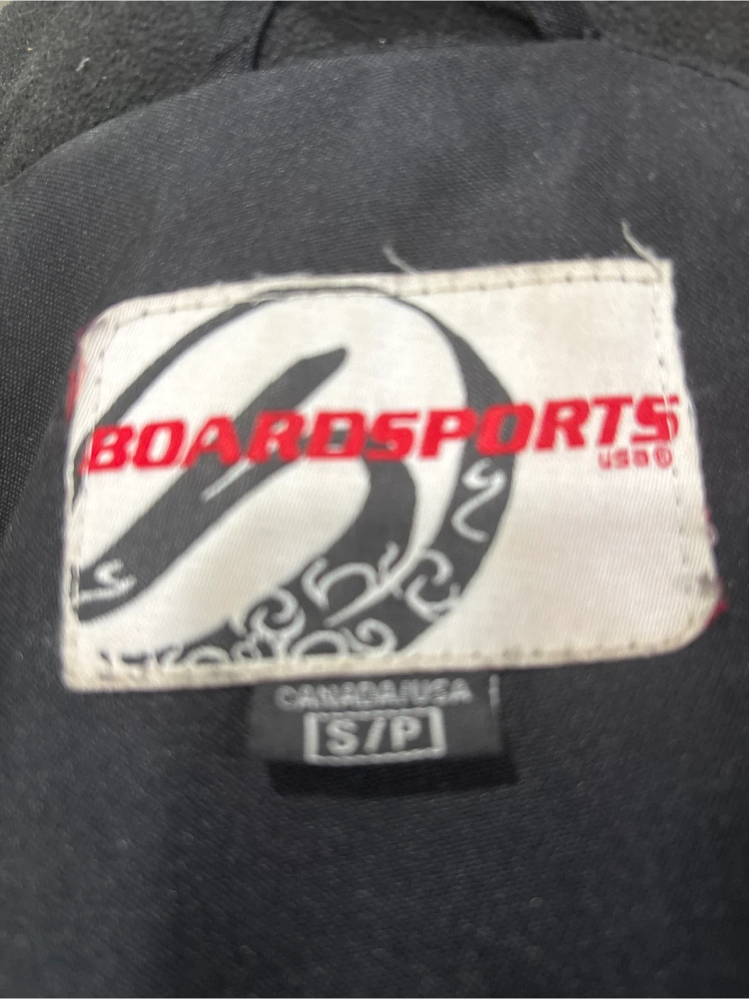 This is a BoardSports USA jacket. It's a size small It's black with cream accents and features multiple pockets.