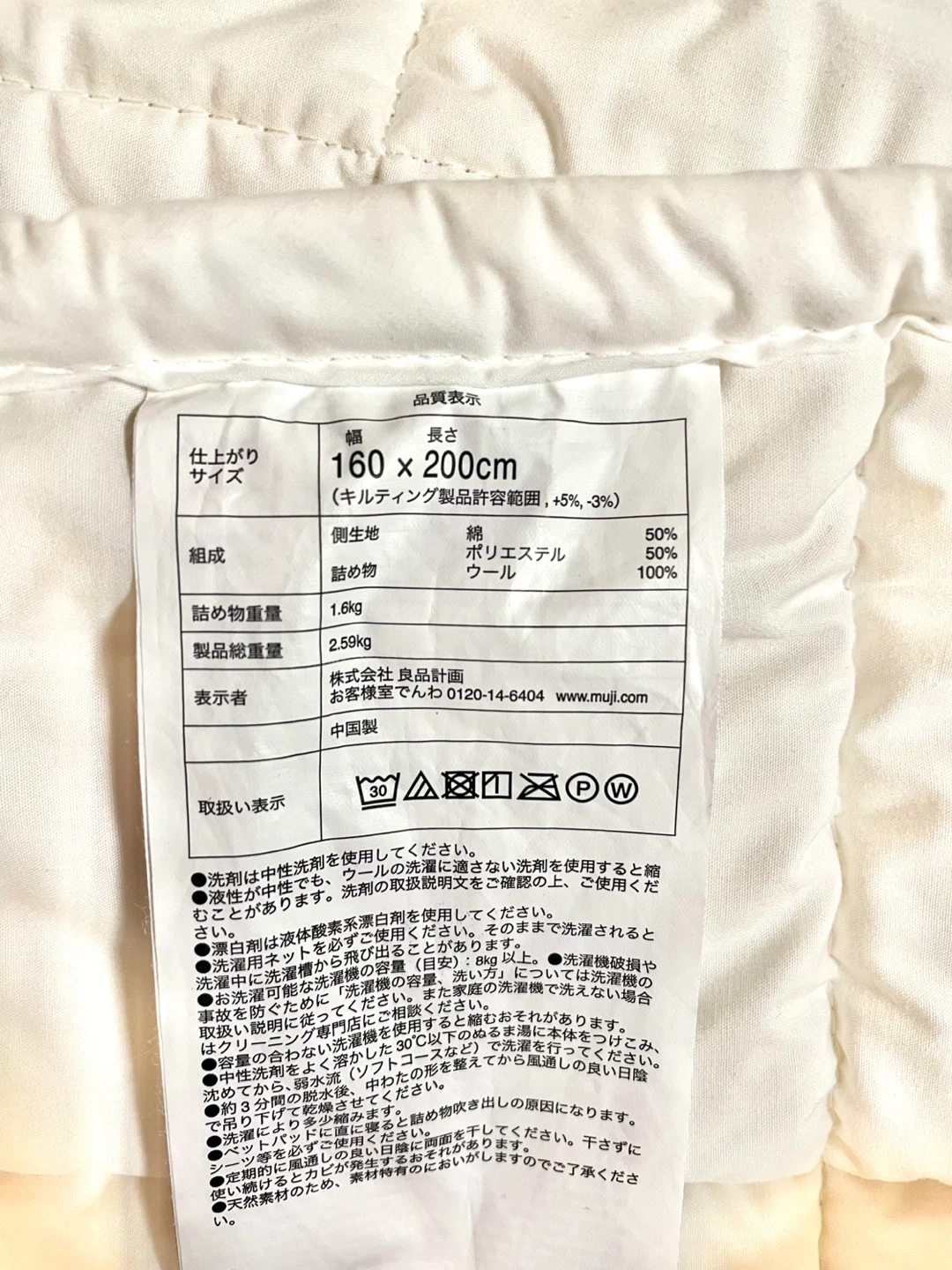 MUJI 100% Wool Mattress Pad, 160x200cm