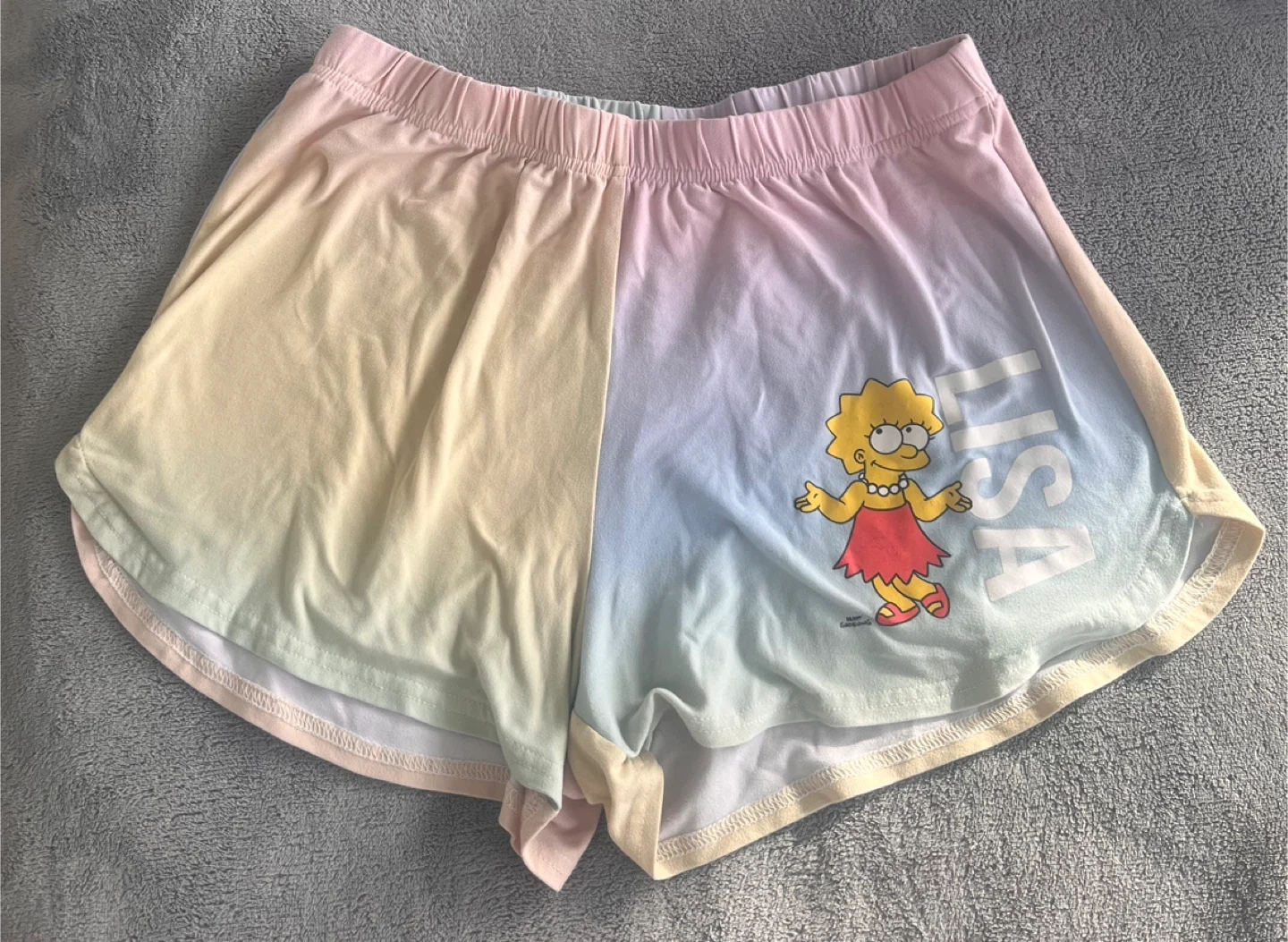 These comfy pajama shorts feature Lisa Simpson on a pastel ombre background. They have an elastic waistband for a snug fit. Perfect for lounging at home!
