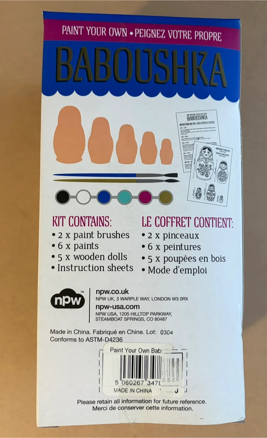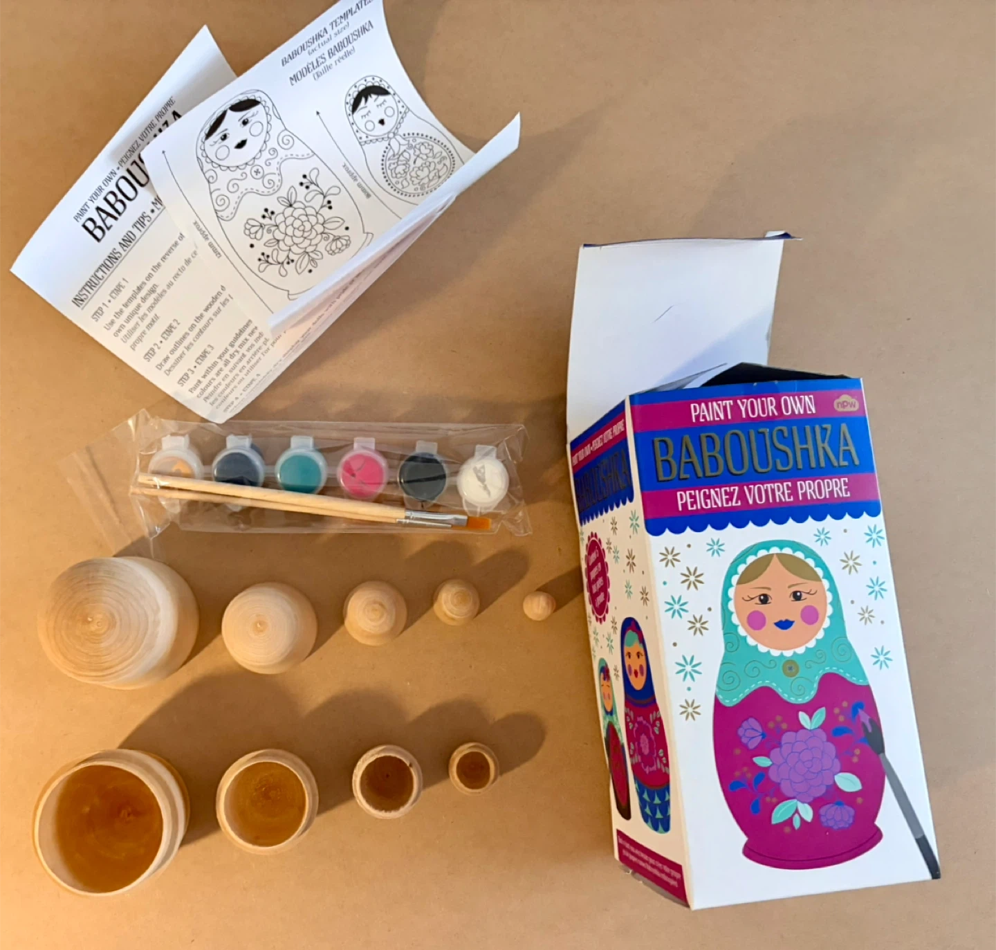 Includes everything you need to create your own set of nesting matryoshka dolls such as: