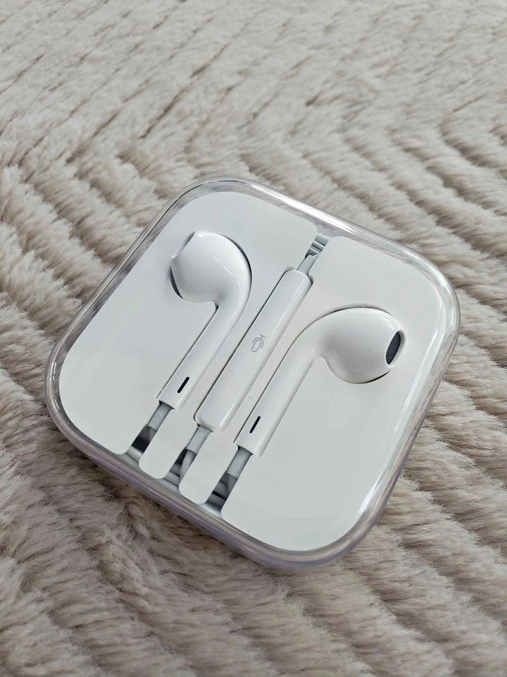 Apple wired headphones, still in clear case. Approx 3.5mm audio jack. Great for phones that use a jack, iPad, iPod, or computer. As is. See pictures for conditions. Meeting location is Aldergrove Library parking lot.