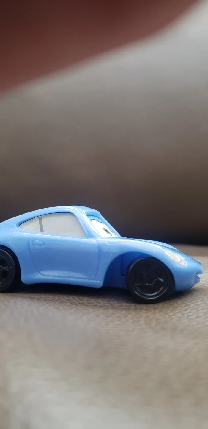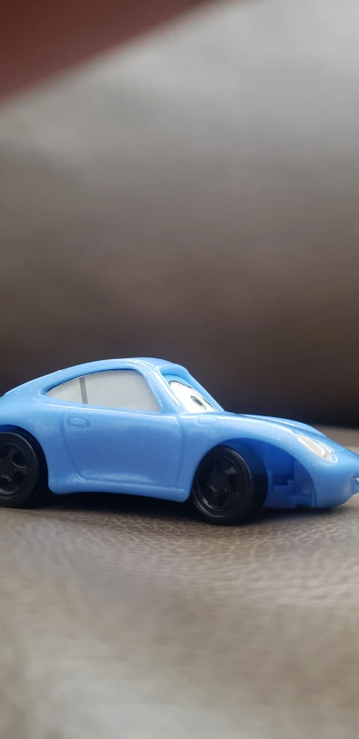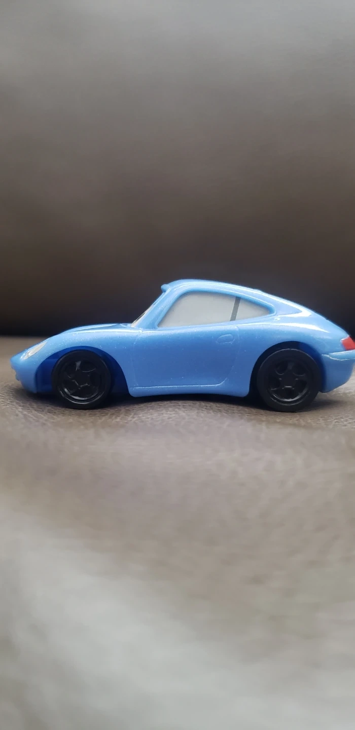 This is a blue Sally Carrera toy car from Disney Pixar. It's made of plastic and features detailed styling. A fun collectible for fans!