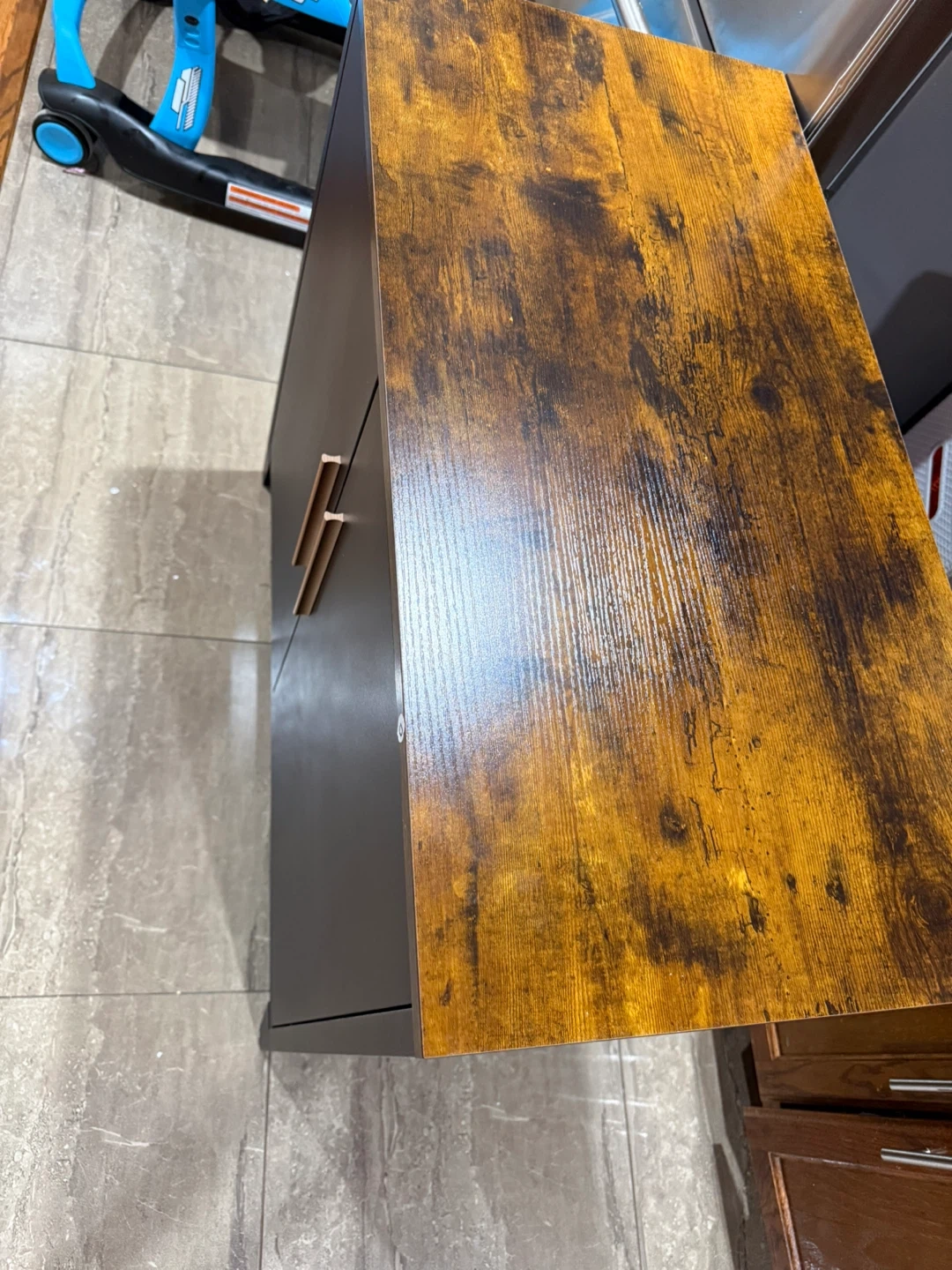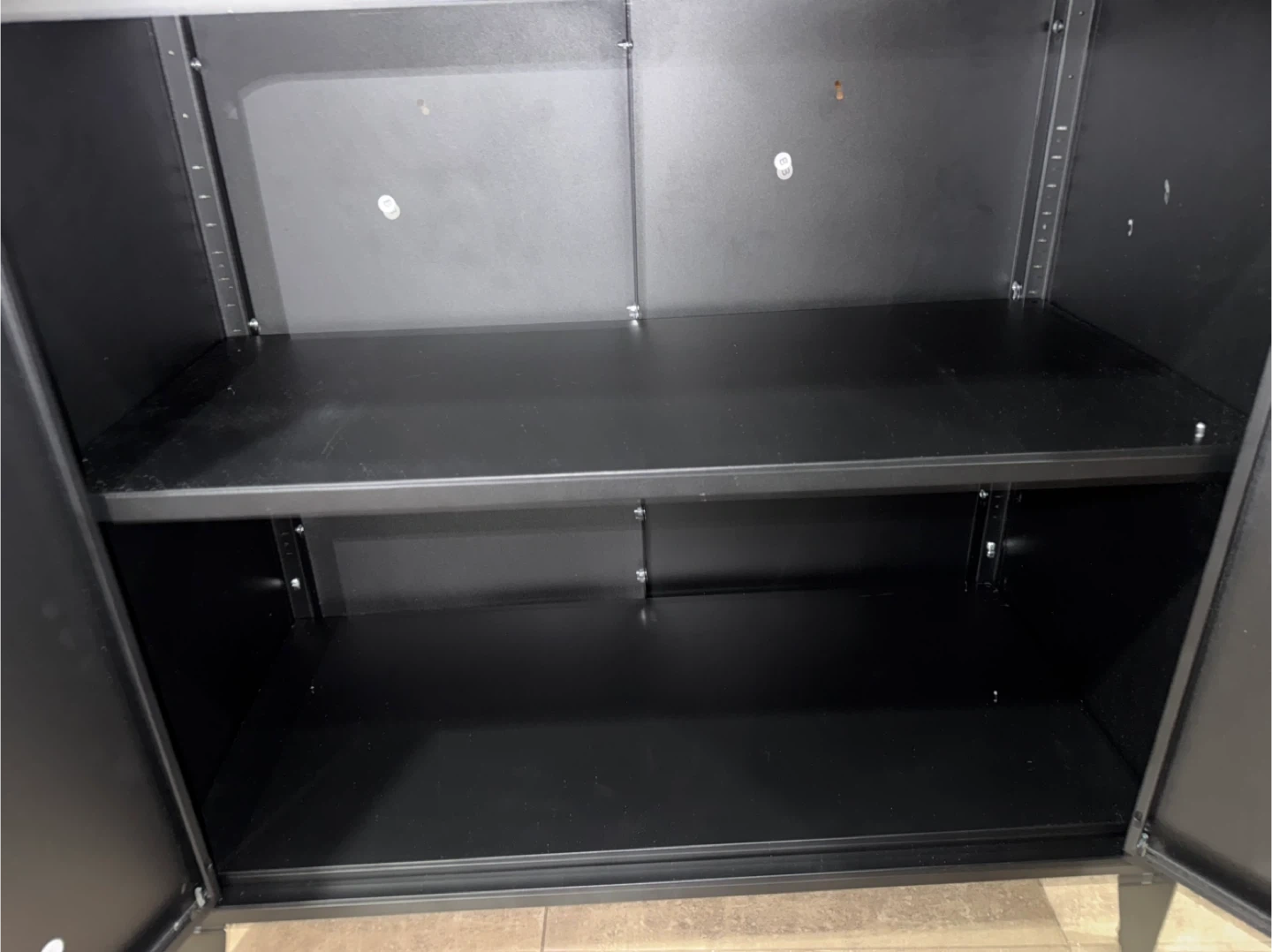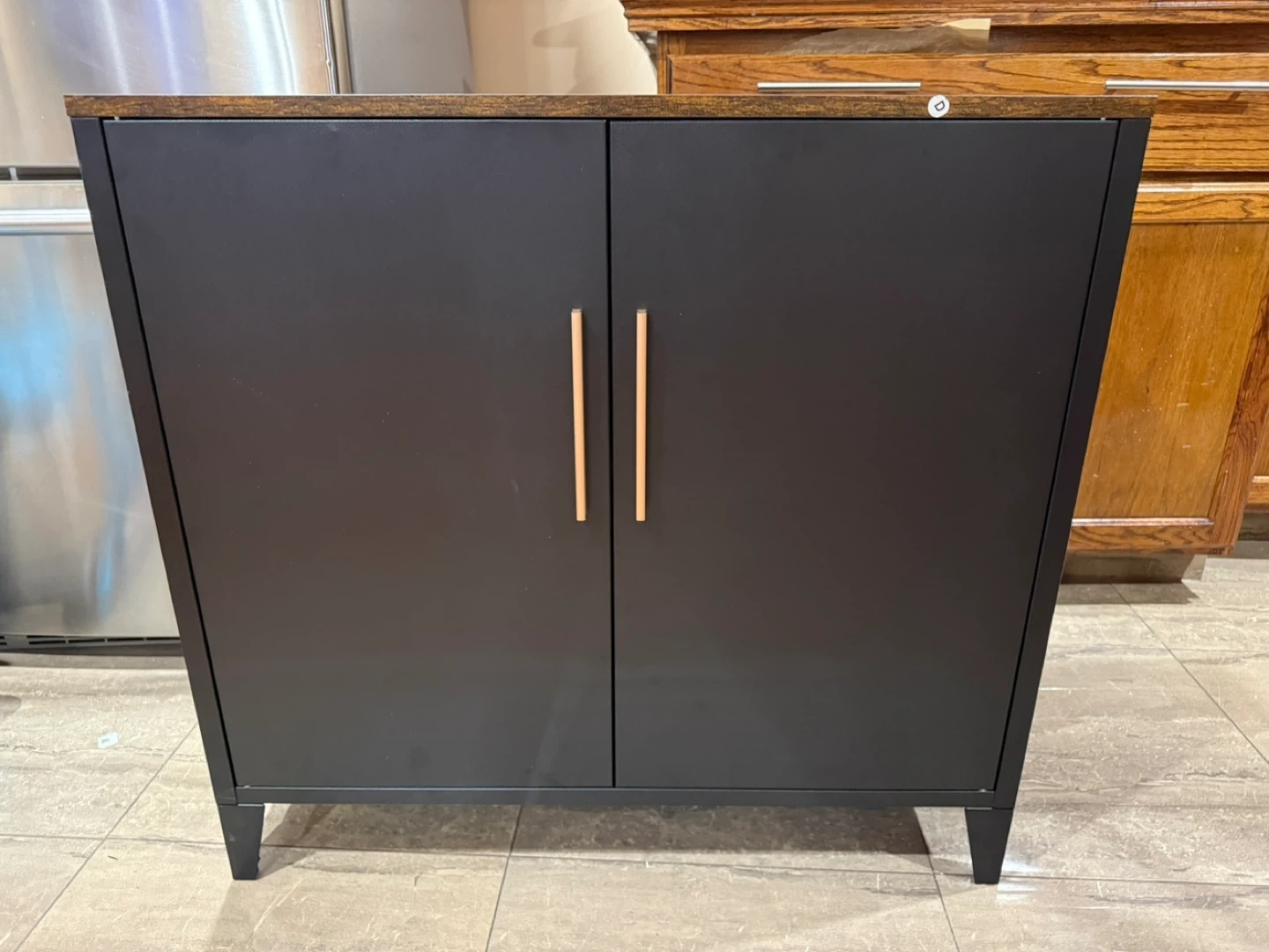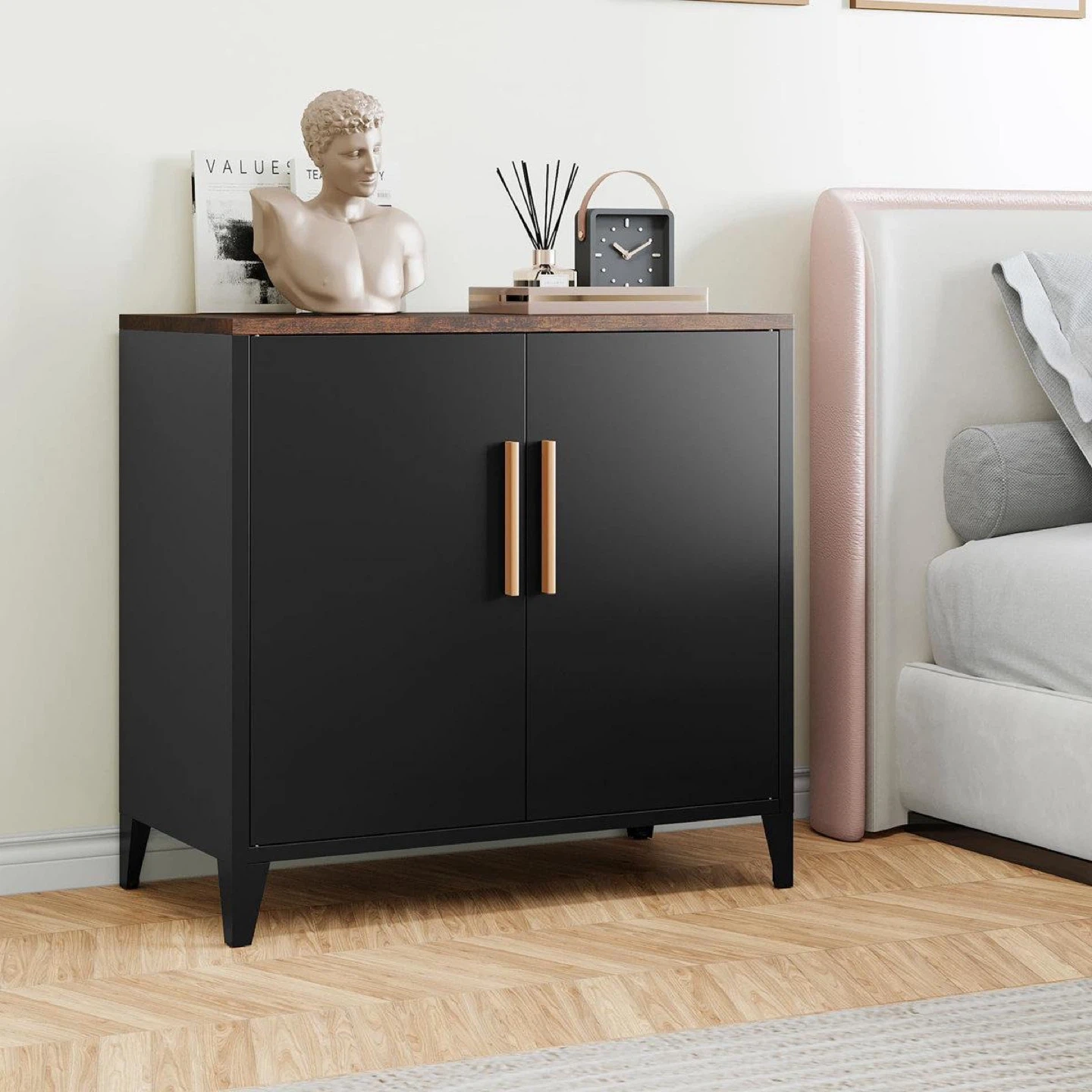 Black 2-Door Storage Cabinet with Wood Top