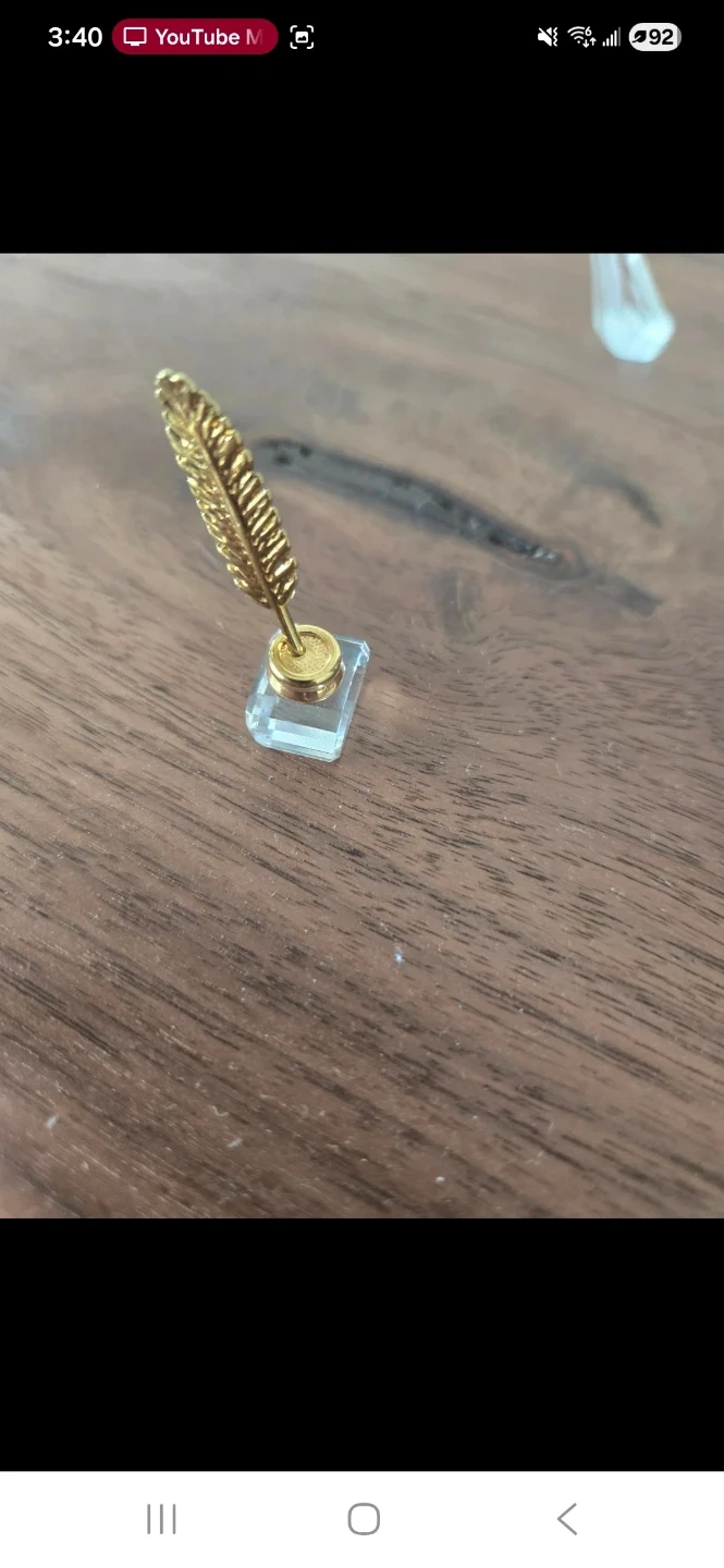 Swarovski parrot, butterfly, feather pen and perfume bottle