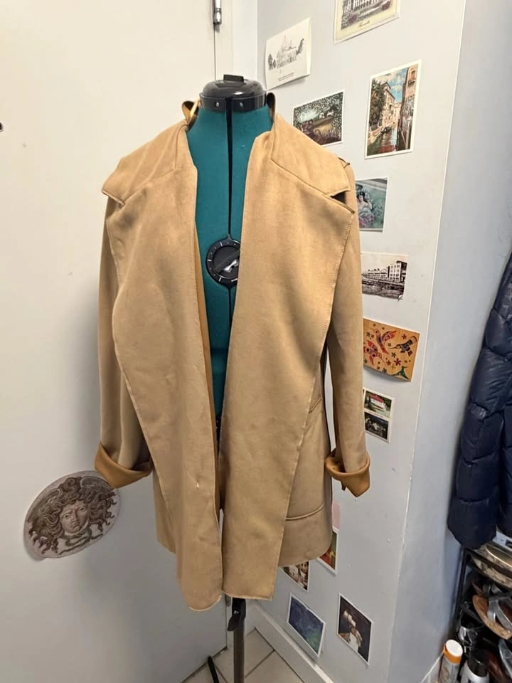 Usually only available online in Canada. Mid length with two front pockets. Size L, but please note it was bought in Singapore and runs smaller than a typical North American L. Closet clean out!