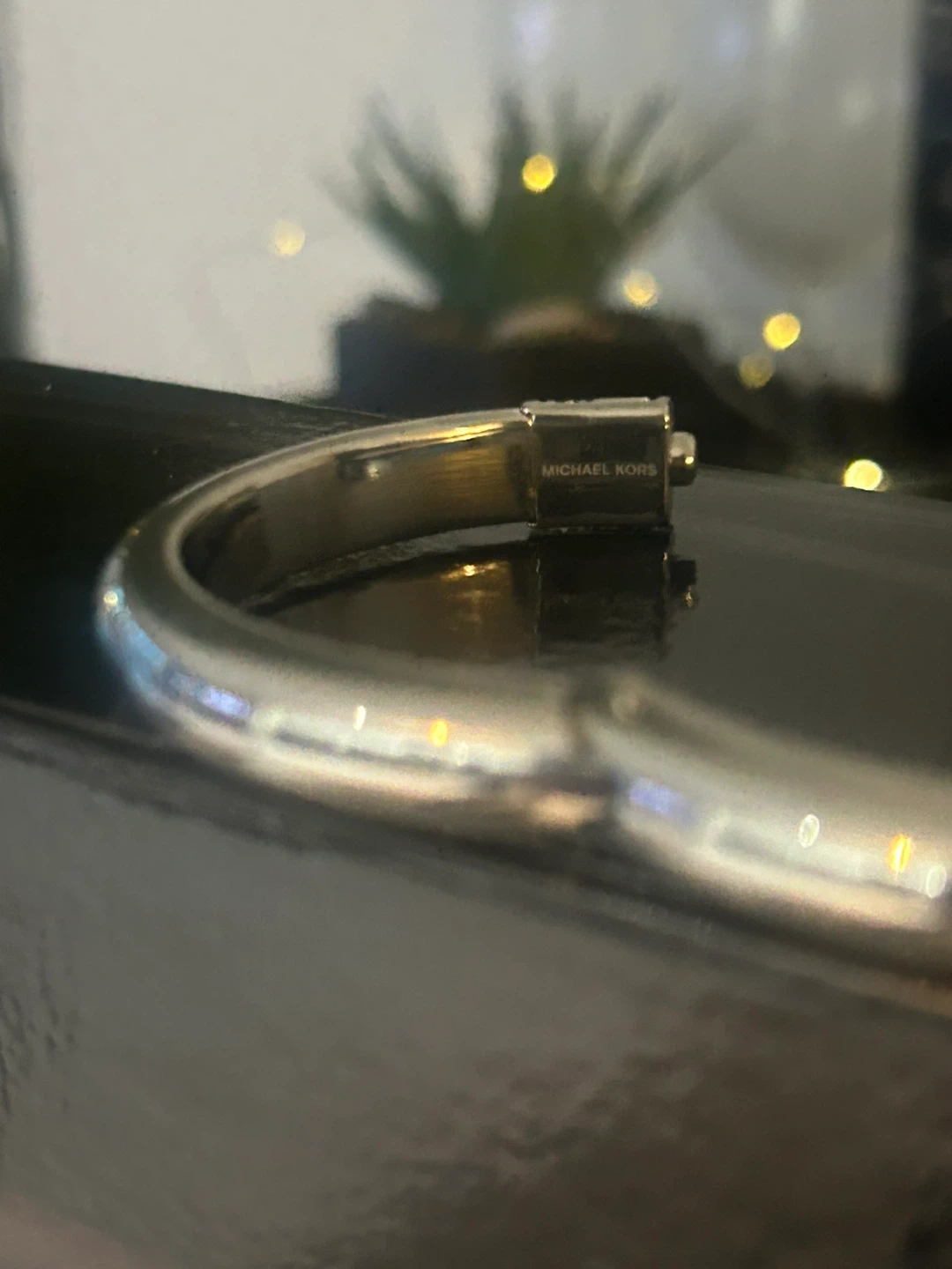 Michael Kors Silver Tone Bangle Bracelet with Crystals