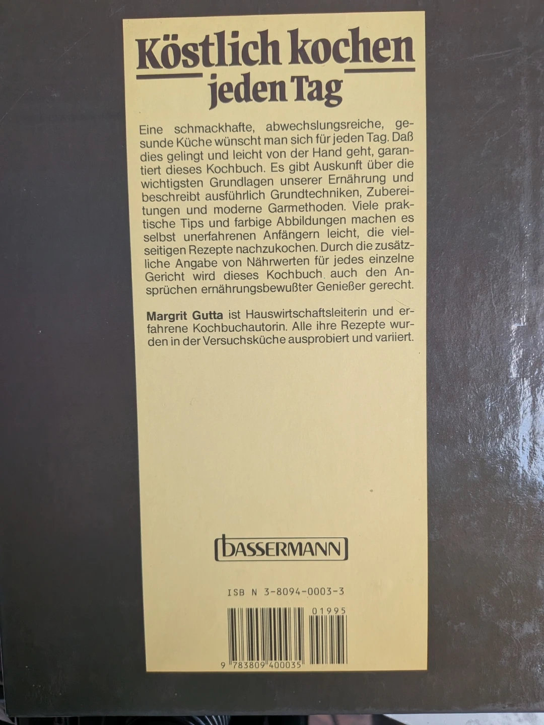 Cookbook features over 1000 recipes, serving suggestions, and kitchen tips. Margrit Gutta shares her expertise as a home economics instructor and experienced cookbook author. All recipes are tested and varied in the test kitchen. It's great for anyone looking to expand their culinary repertoire!