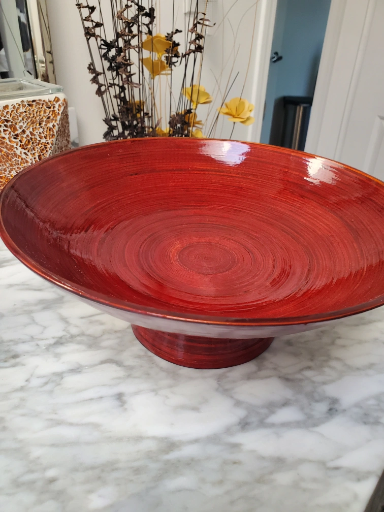 A beautiful red decorative bowl that would look great as a centrepiece or accent piece in your home! It's BRAND NEW and ready for a new home