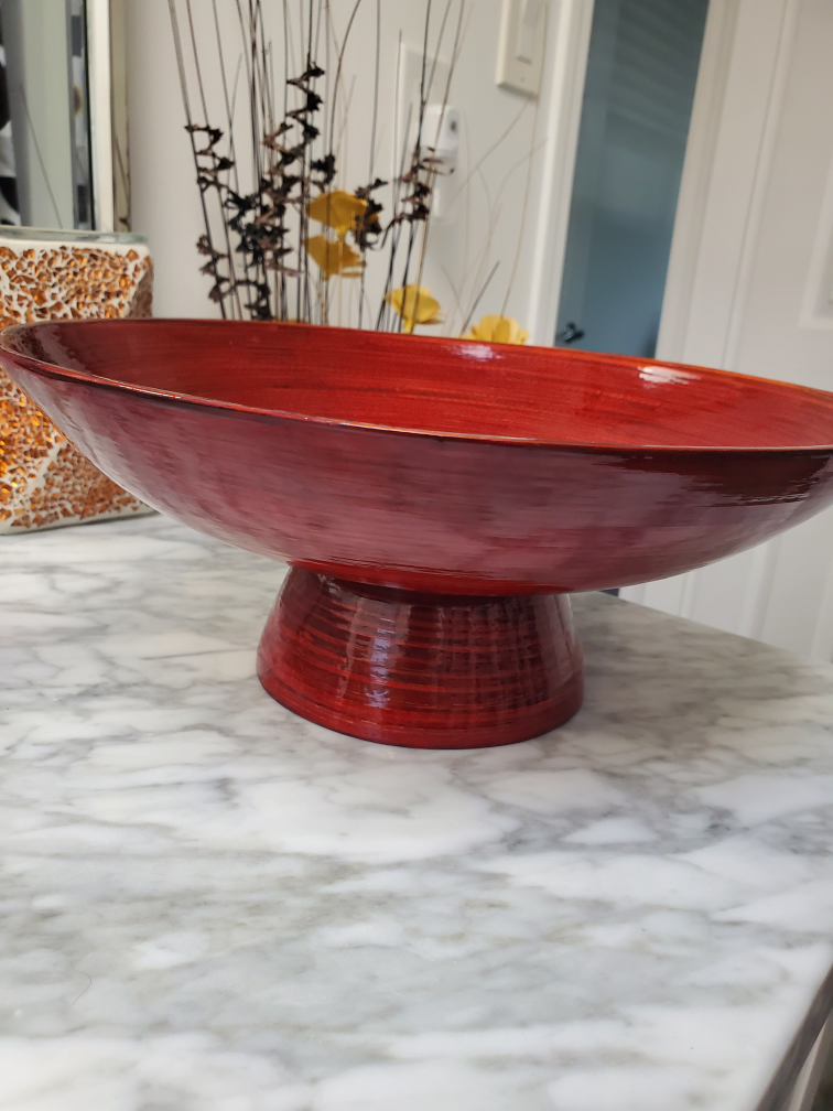 A beautiful red decorative bowl that would look great as a centrepiece or accent piece in your home! It's BRAND NEW and ready for a new home