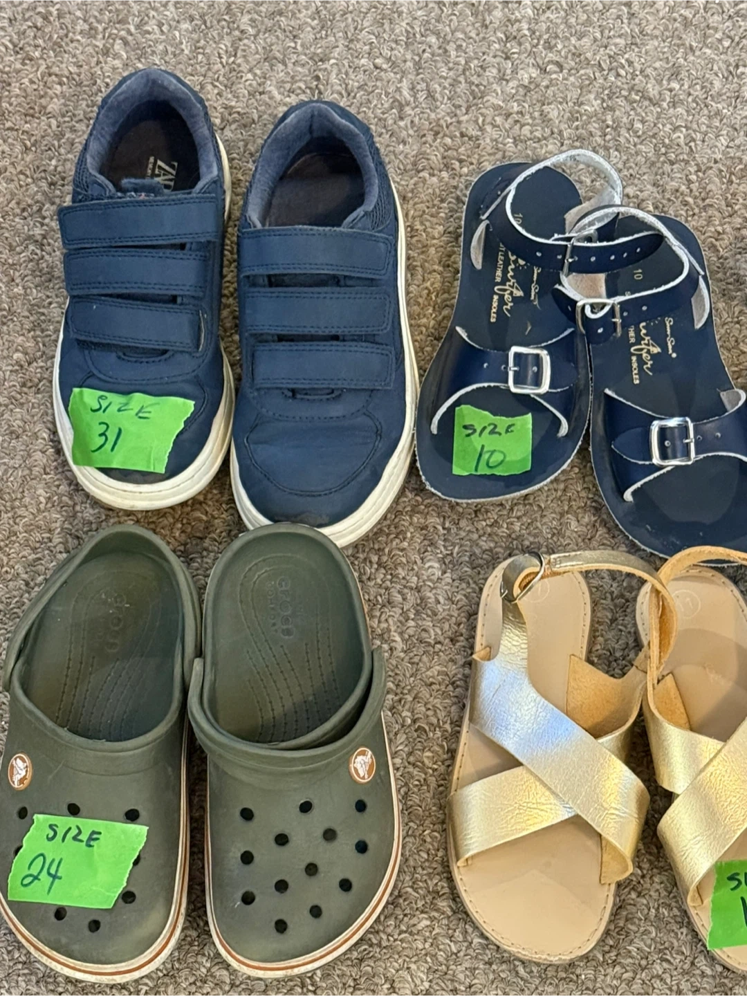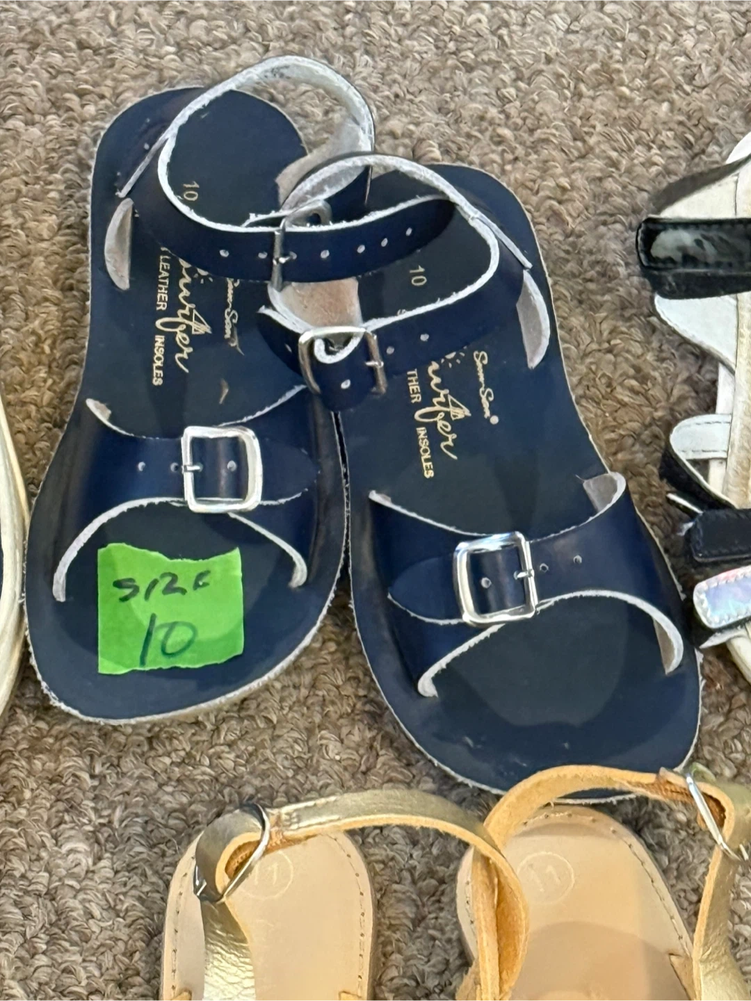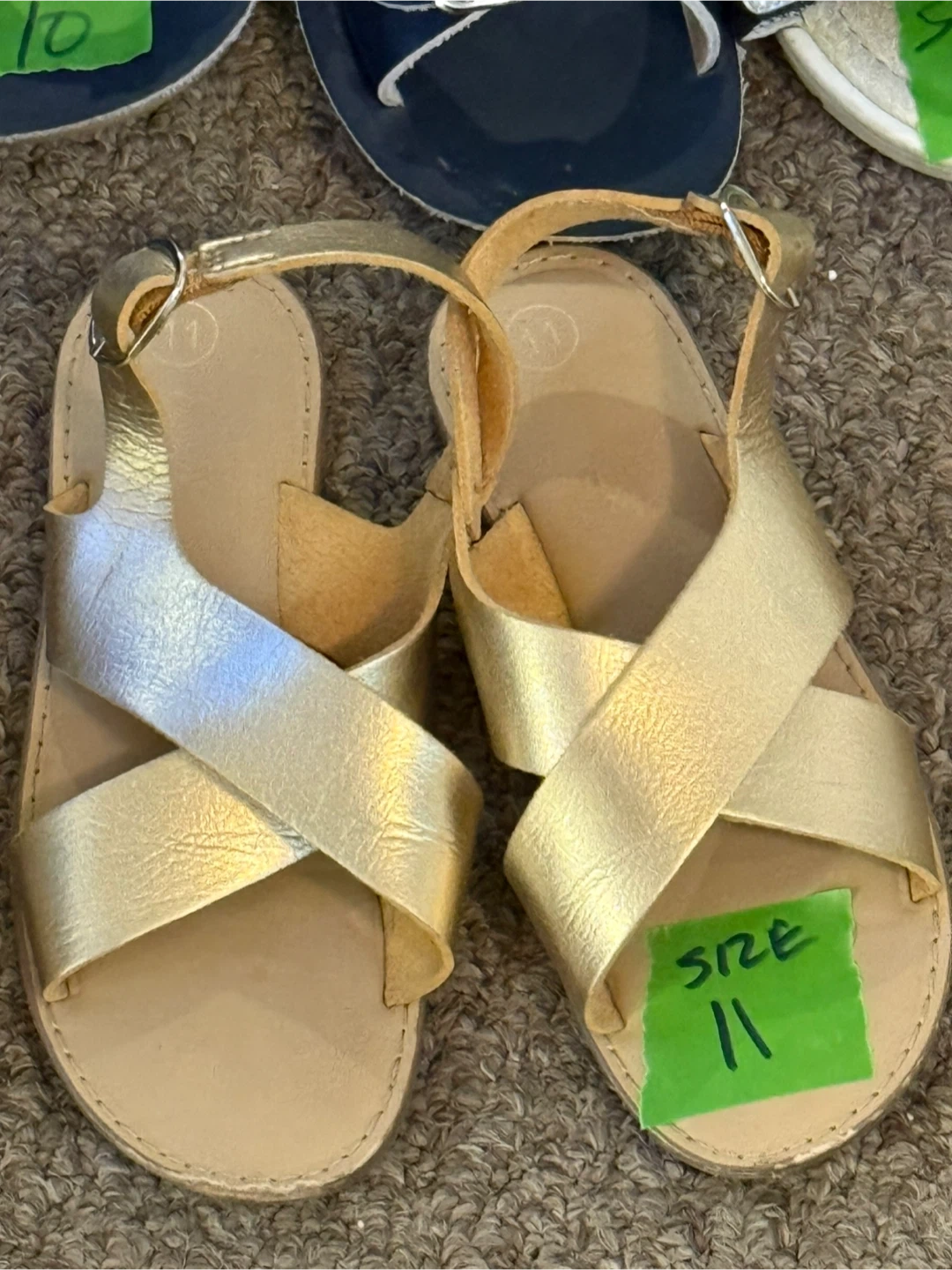 Cute gold criss-cross sandals for kids. Size 11. These are perfect for summer outings or everyday wear. Made with a faux leather material.
