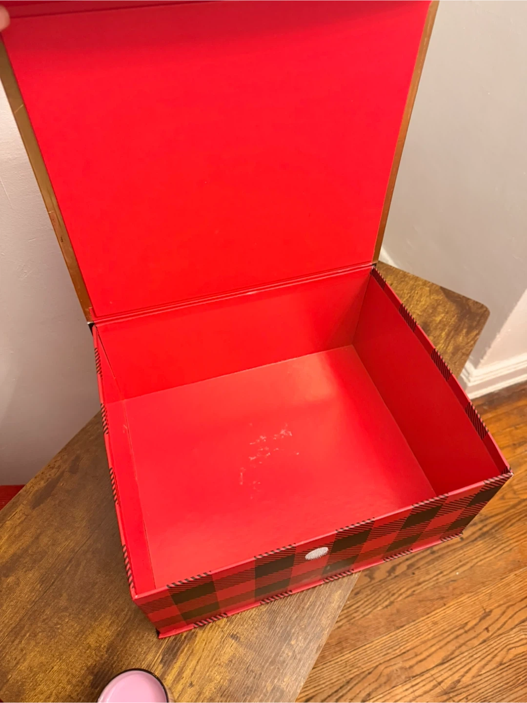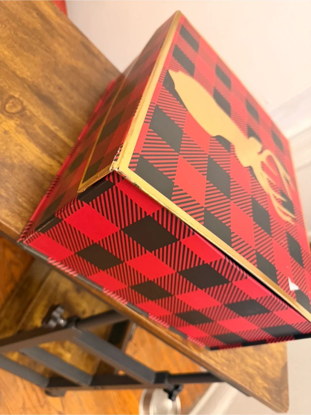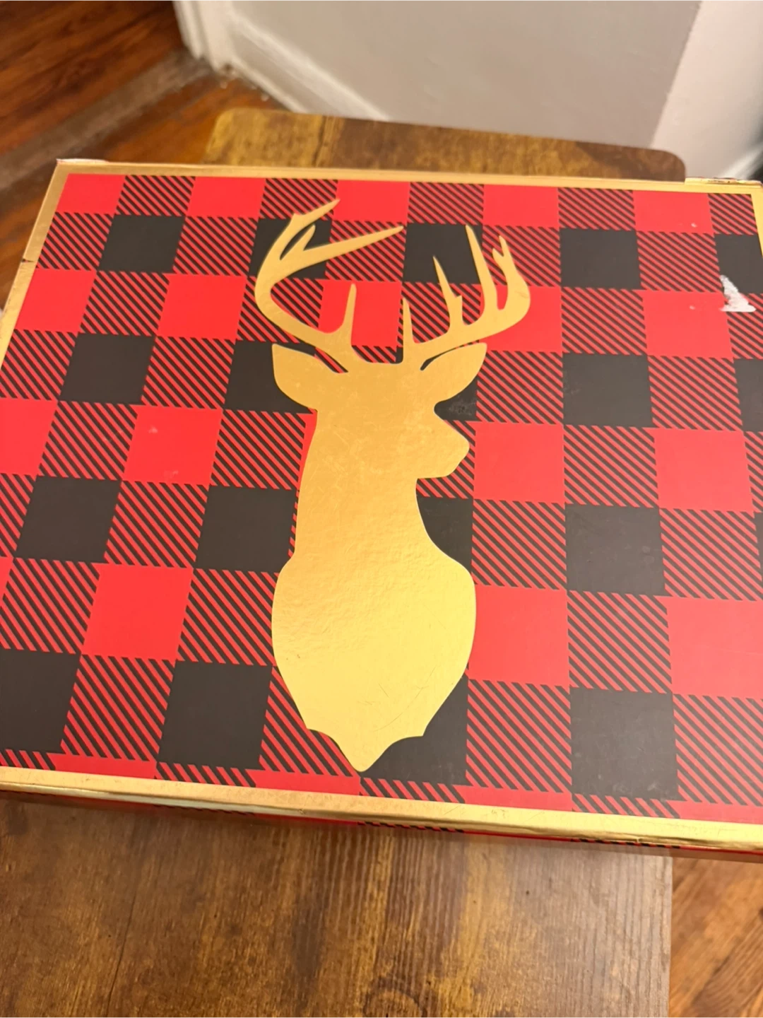 Red Black Buffalo Plaid Gift Box with Gold Deer
