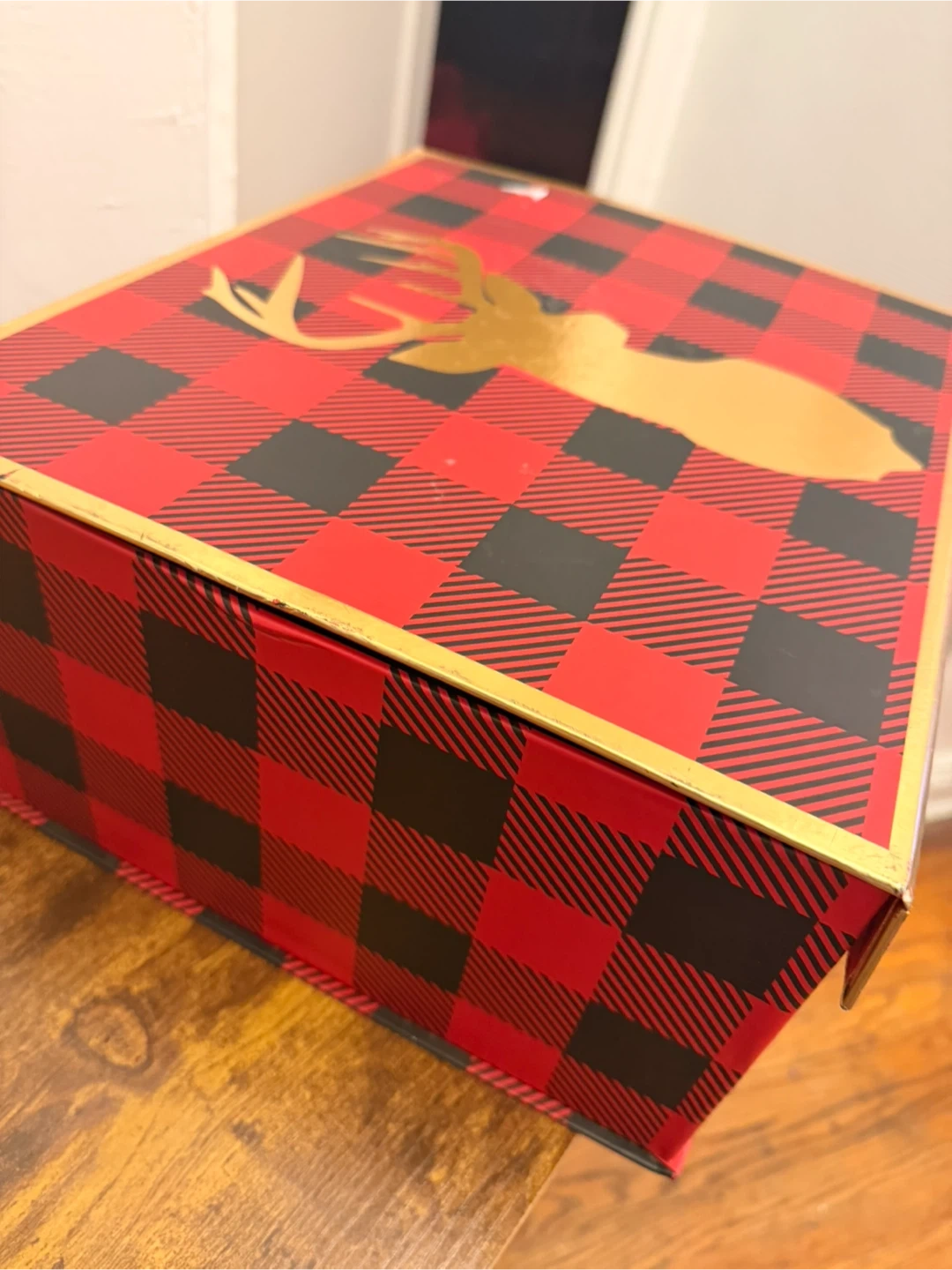 Red Black Buffalo Plaid Gift Box with Gold Deer