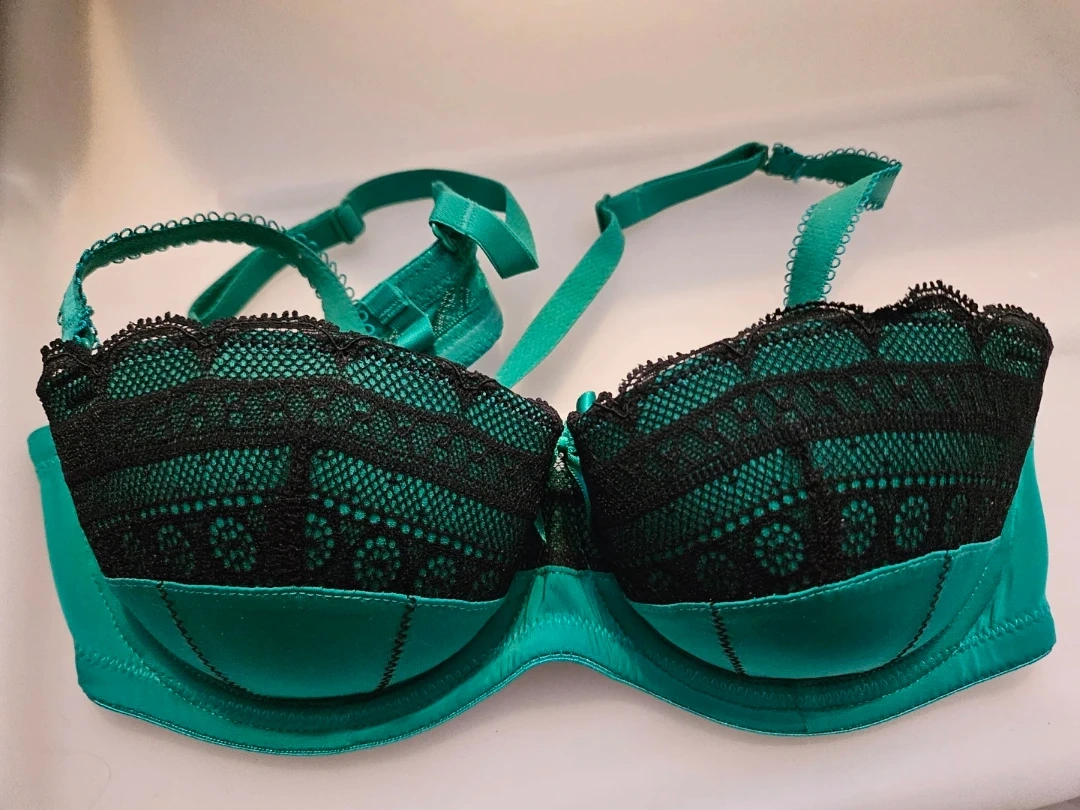 Selling a bra in a lovely green and black colour combination! It's in great condition and ready for a new home. Would be super sexy under a sheer top or blazer.