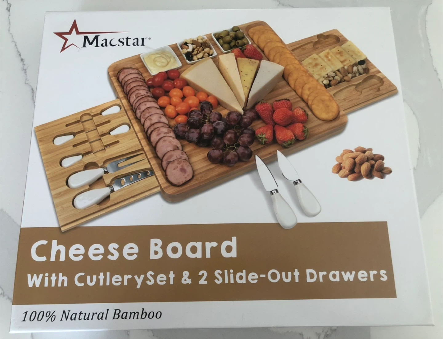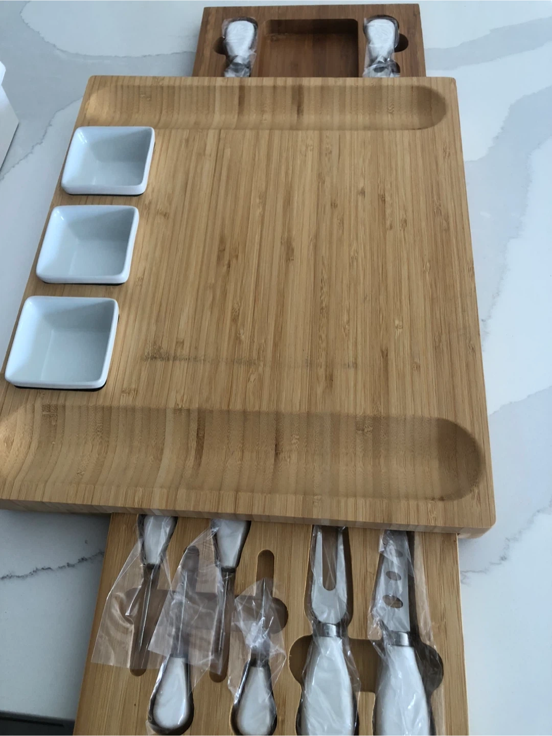 Cheese Board with Cutlery Set, 2 Slide Out Drawers and 3 bowls