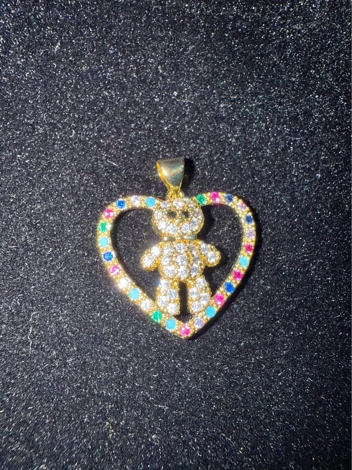 18k Gold Fill multi color Heart Bear pendant