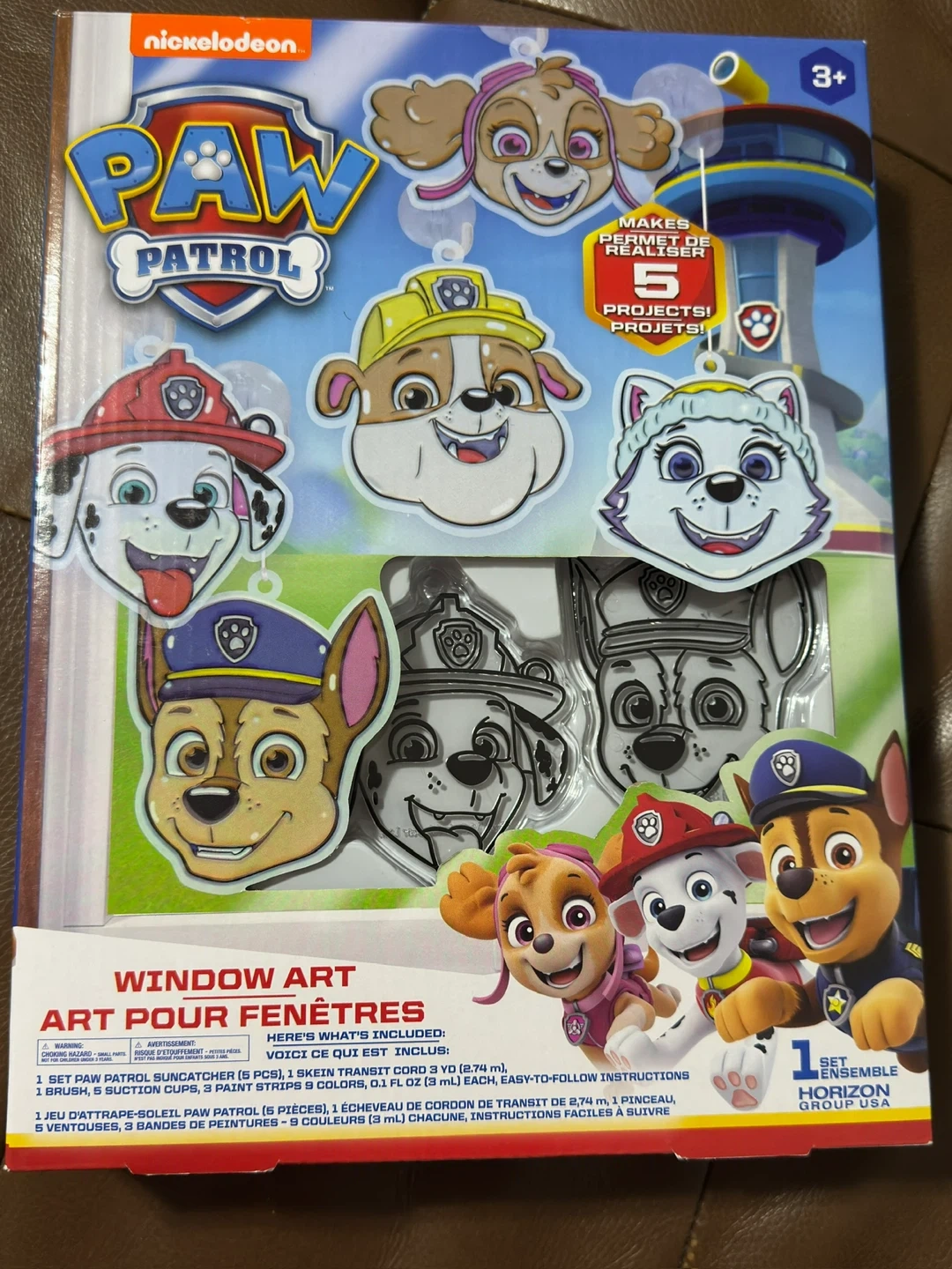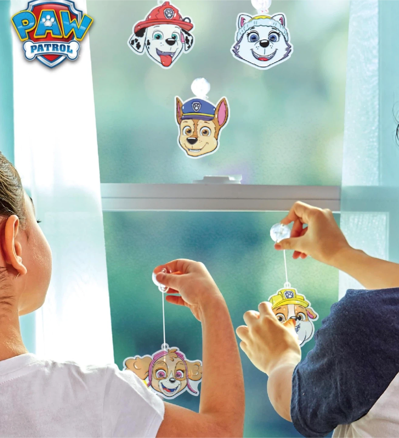 This Paw Patrol window art kit lets you create 5 awesome projects. It includes 5 Paw Patrol suncatchers, a brush, suction cups, and 9 paint colours. Easy-to-follow instructions are included.
