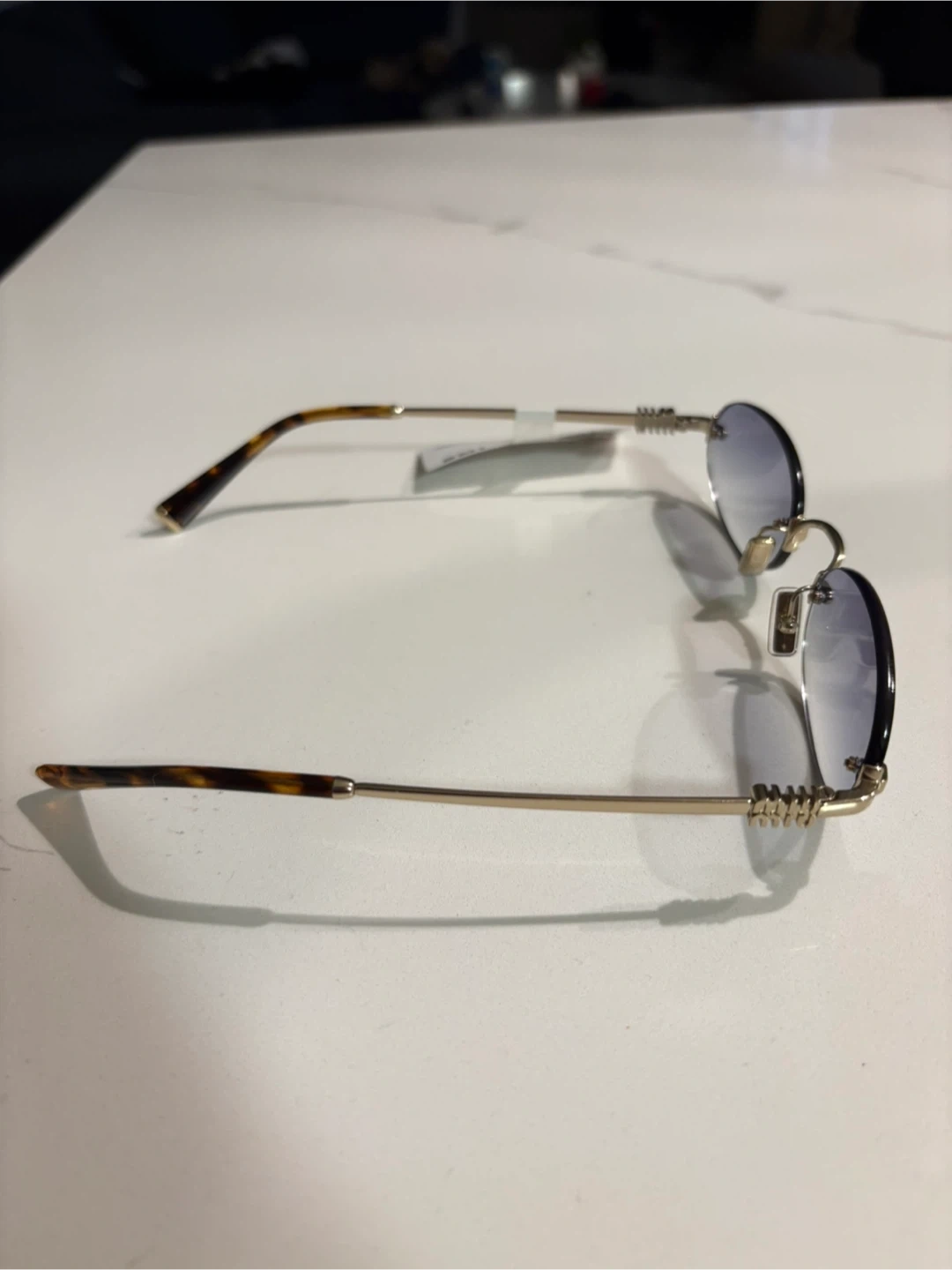 Selling a pair of Miu Miu sunglasses, model MU A54S ZVN800. These stylish sunglasses feature a unique design and are in great condition. They originally retailed for $578.00.