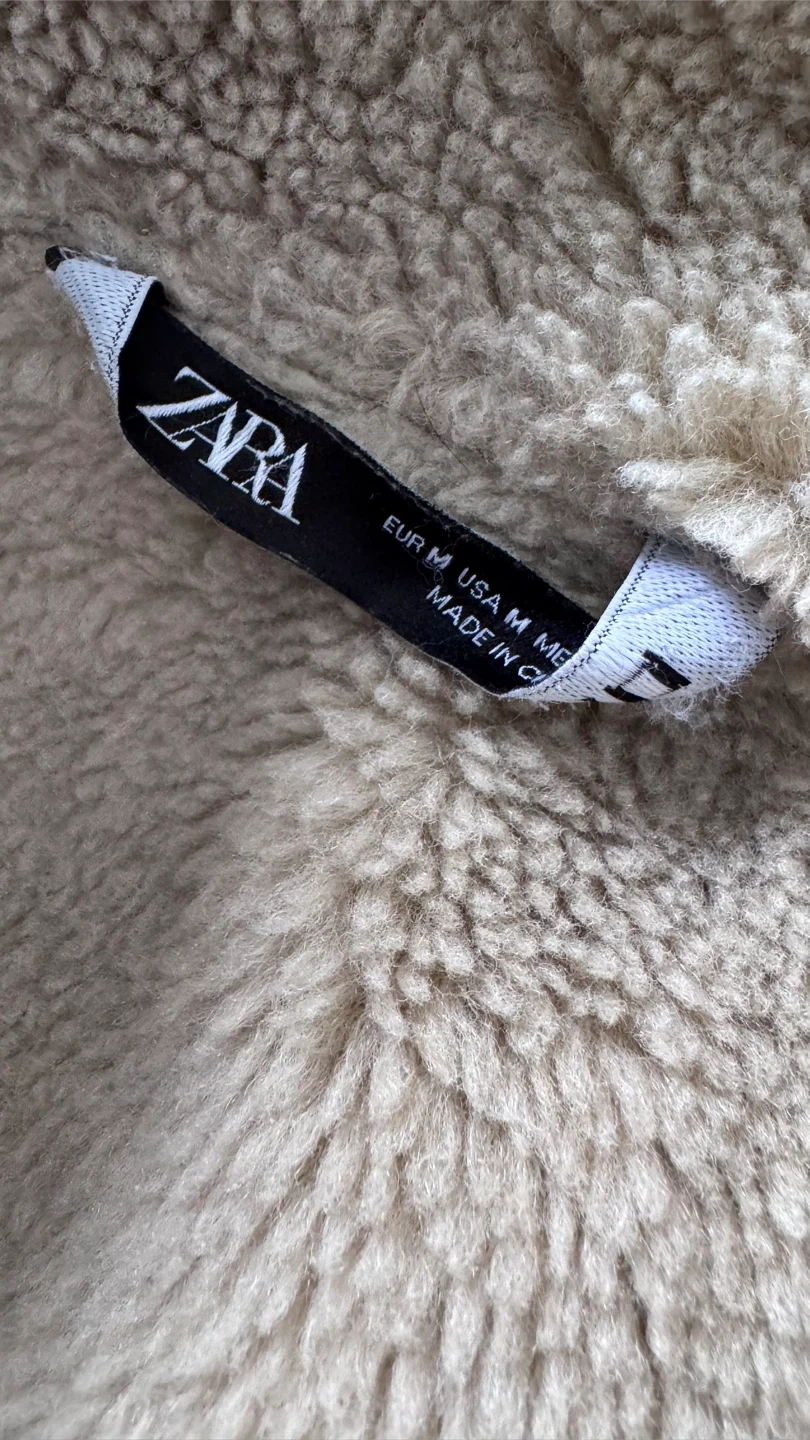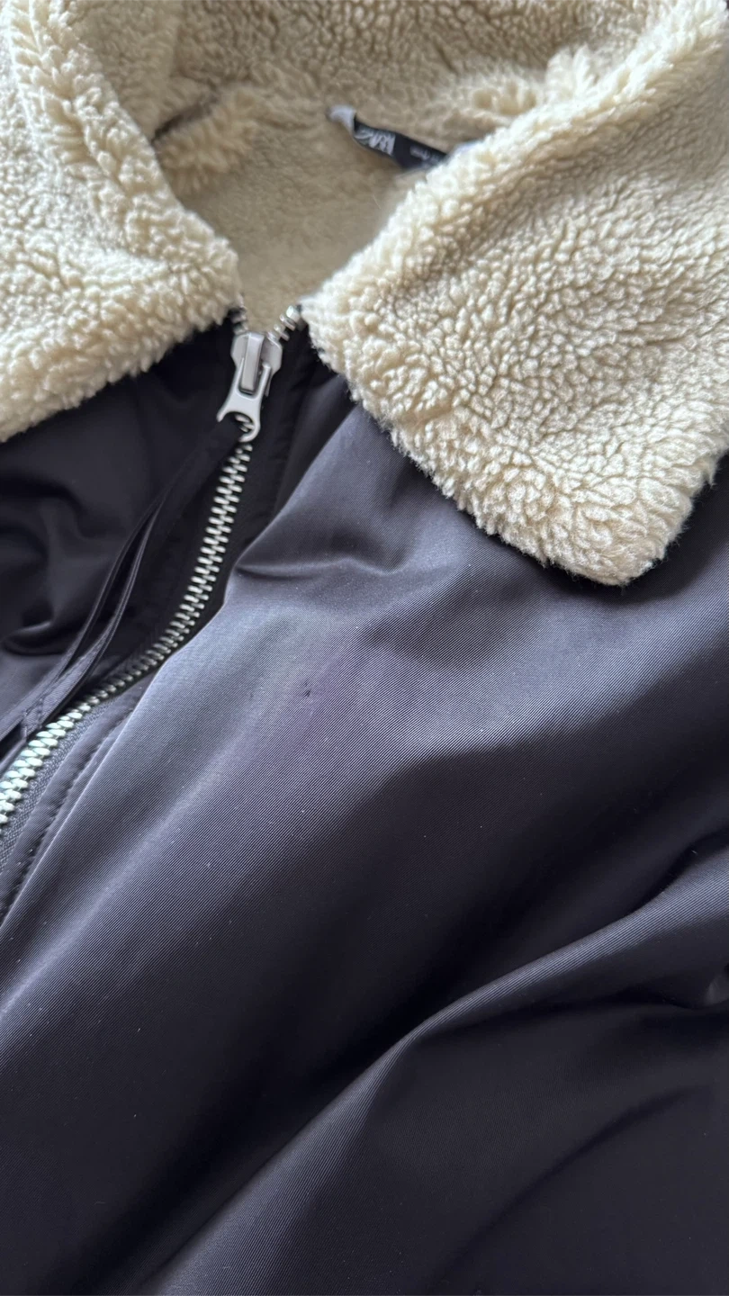 Selling a Zara black jacket, size medium. It features a cozy faux shearling collar, perfect for adding a touch of warmth and style to your outfits.