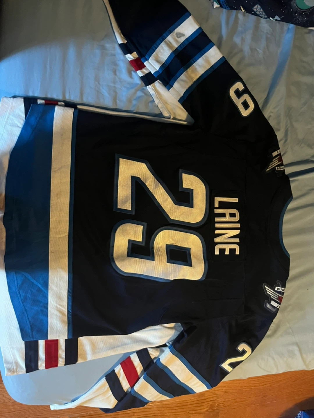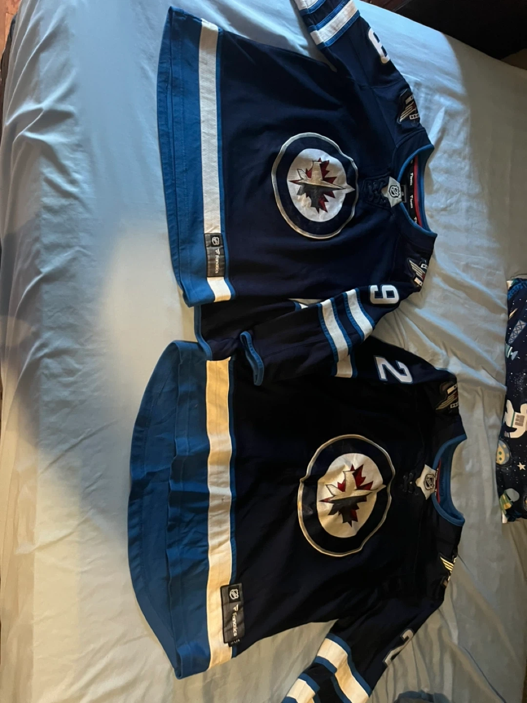 These are an officially licensed Winnipeg Jets hockey jerseys by Fanatics. It's a size Lg mens and xtra lg kids. The jerseys features "Laine" and the number "29" on the back. $50.00 each or both for $100.00