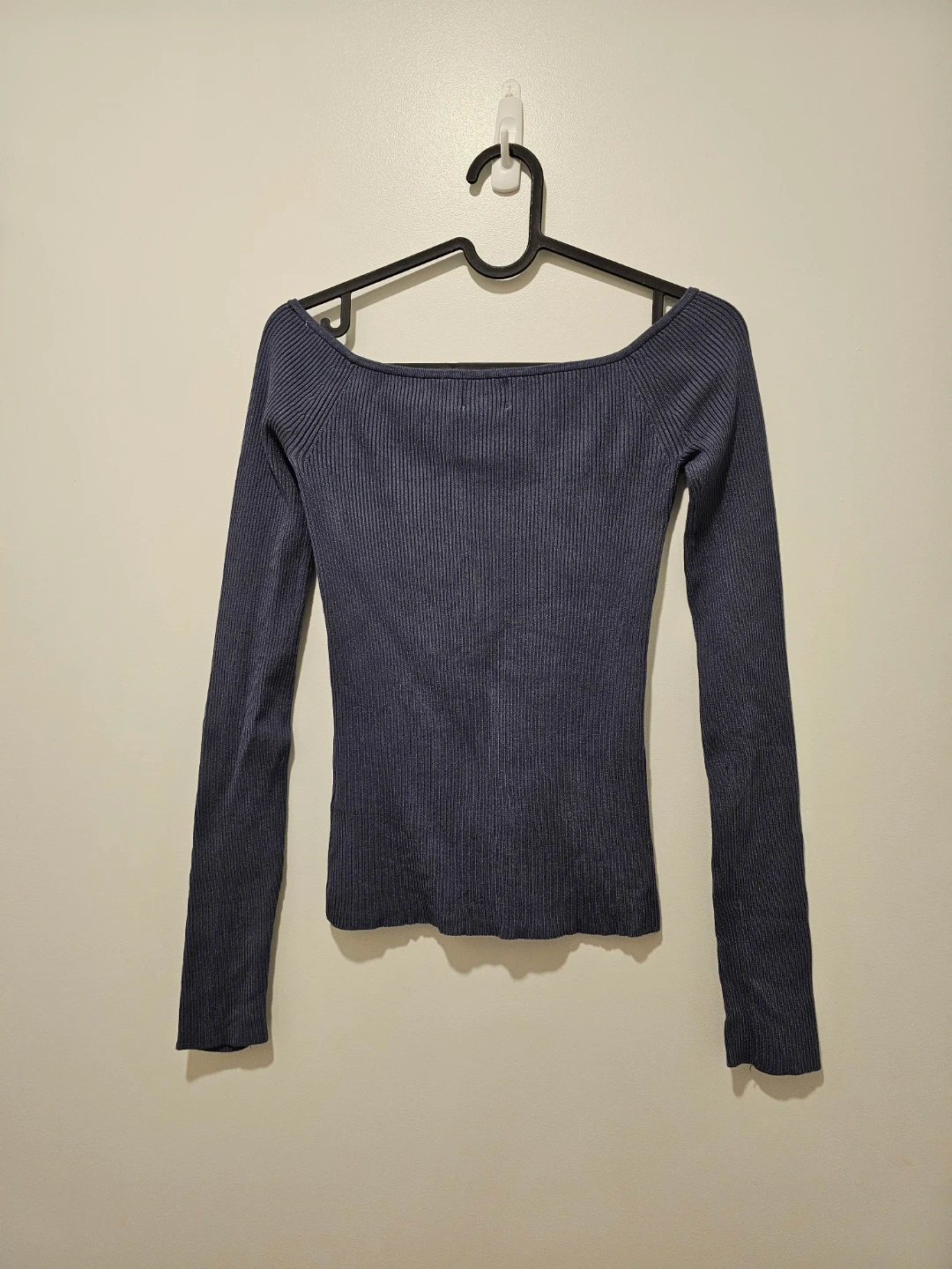 H&M Women's Blue Ribbed Off-the-Shoulder Long Sleeve Top