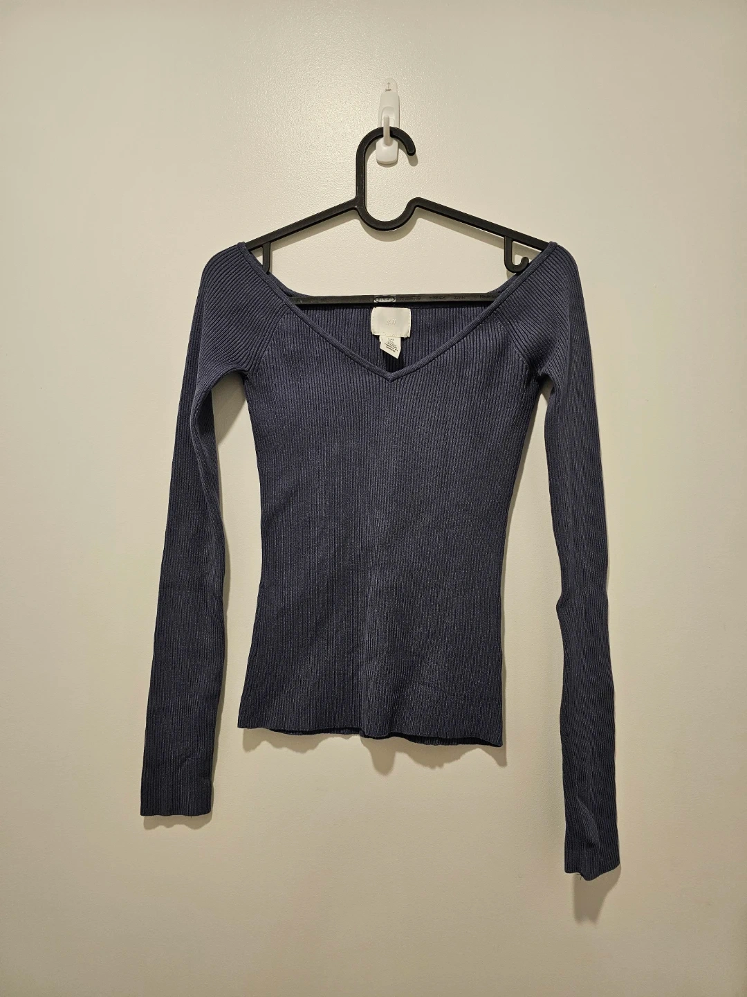 H&M Women's Blue Ribbed Off-the-Shoulder Long Sleeve Top