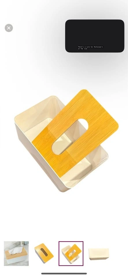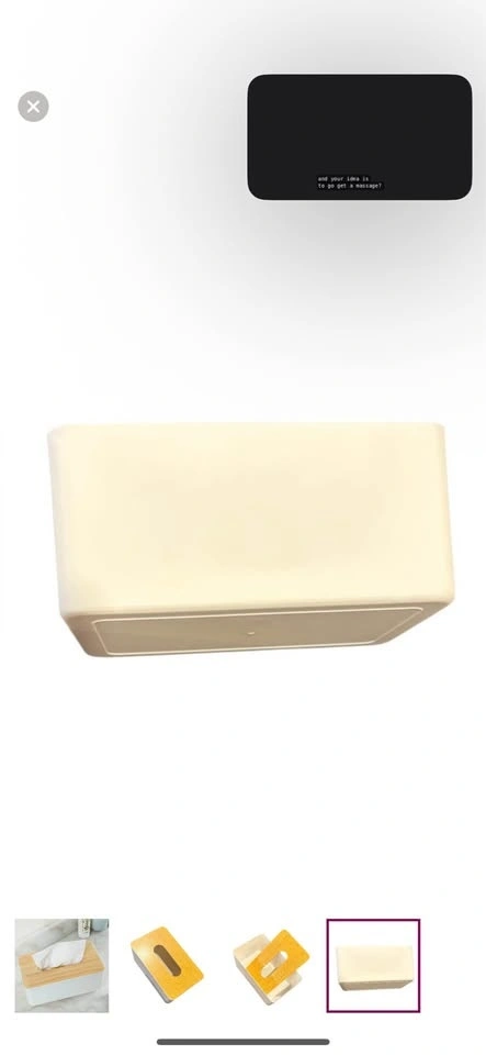 Stylish tissue holder. Wood lid is MDF material with wood design. Please note this does not cover a box of tissues, you need to take tissues out of the box. Measures L 8.25" x W 5" x H 3.75". Perfect condition. Would be great for baby wipes too! E transfer and porch pickup preferred 📍Pond Mills