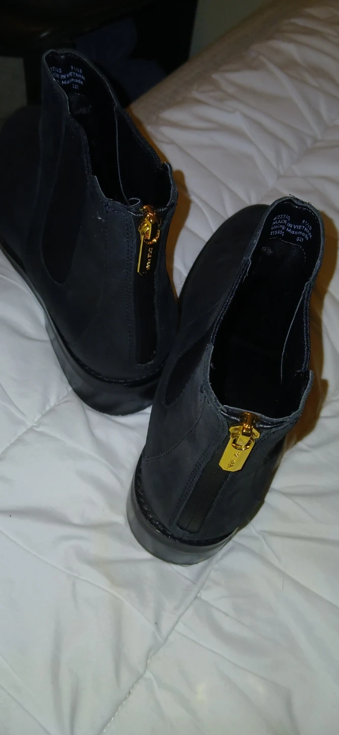 These stylish and comfortable boots are perfect for any occasion, with a sleek design and convenient zipper detail at the back.