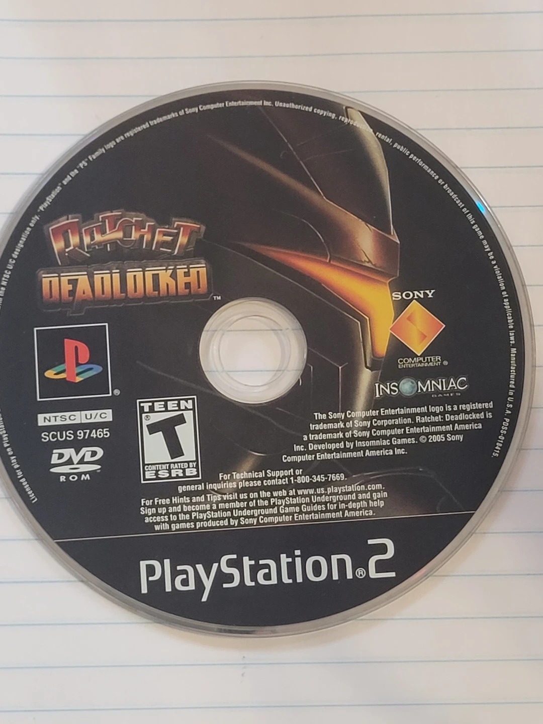 This is the PlayStation 2 game Ratchet: Deadlocked. It's a DVD-ROM rated Teen by ESRB. Developed by Insomniac Games.