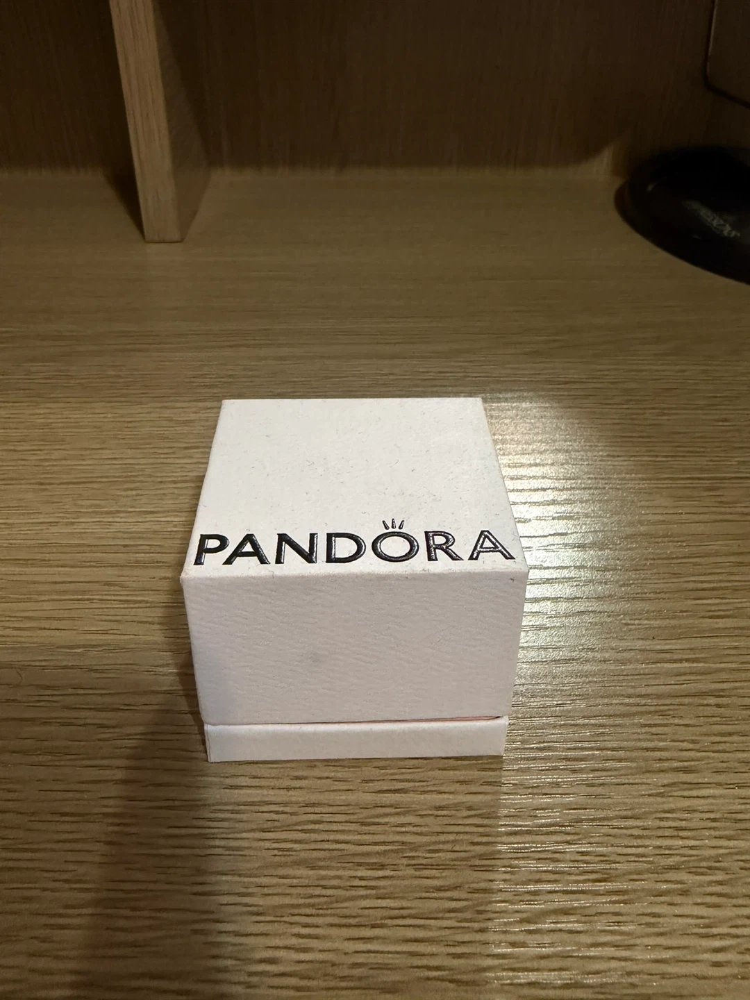 This is a Pandora jewelry box. It's white with the Pandora logo printed on top. Perfect for storing or gifting your favourite Pandora pieces!