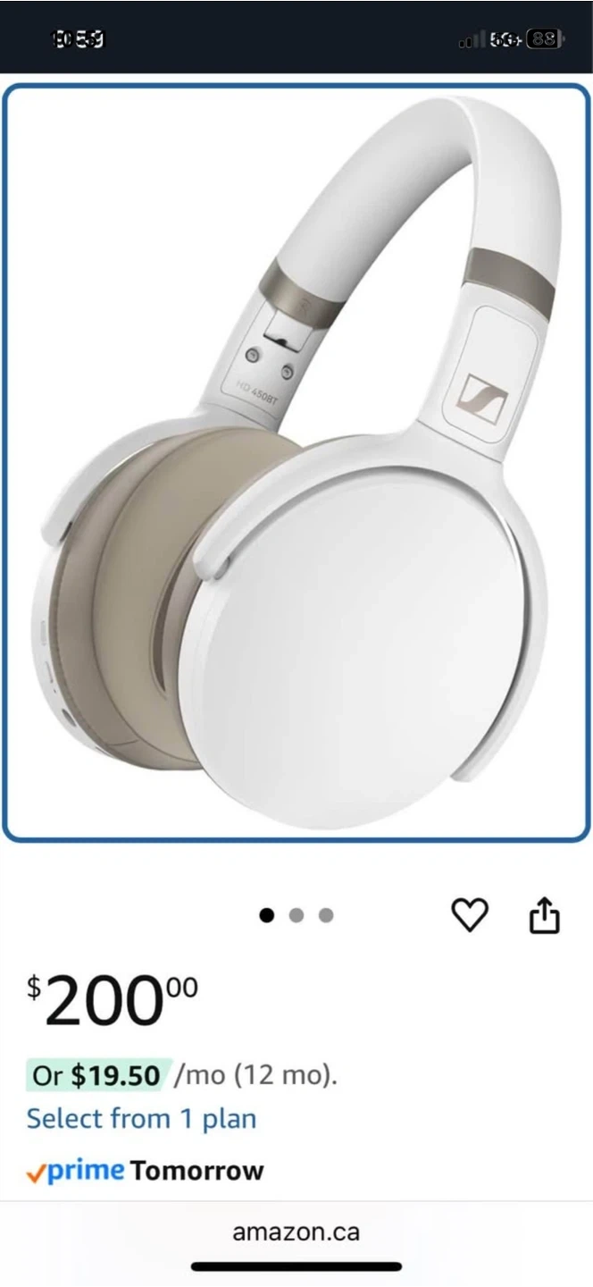 Selling a pair of Sennheiser HD 450BT wireless headphones in white! They come with a carrying case, audio cable, and charging cable. These headphones are foldable for easy storage and portability. I bought these for $200, and never used them. Brand new in box. Excellent Christmas gift π