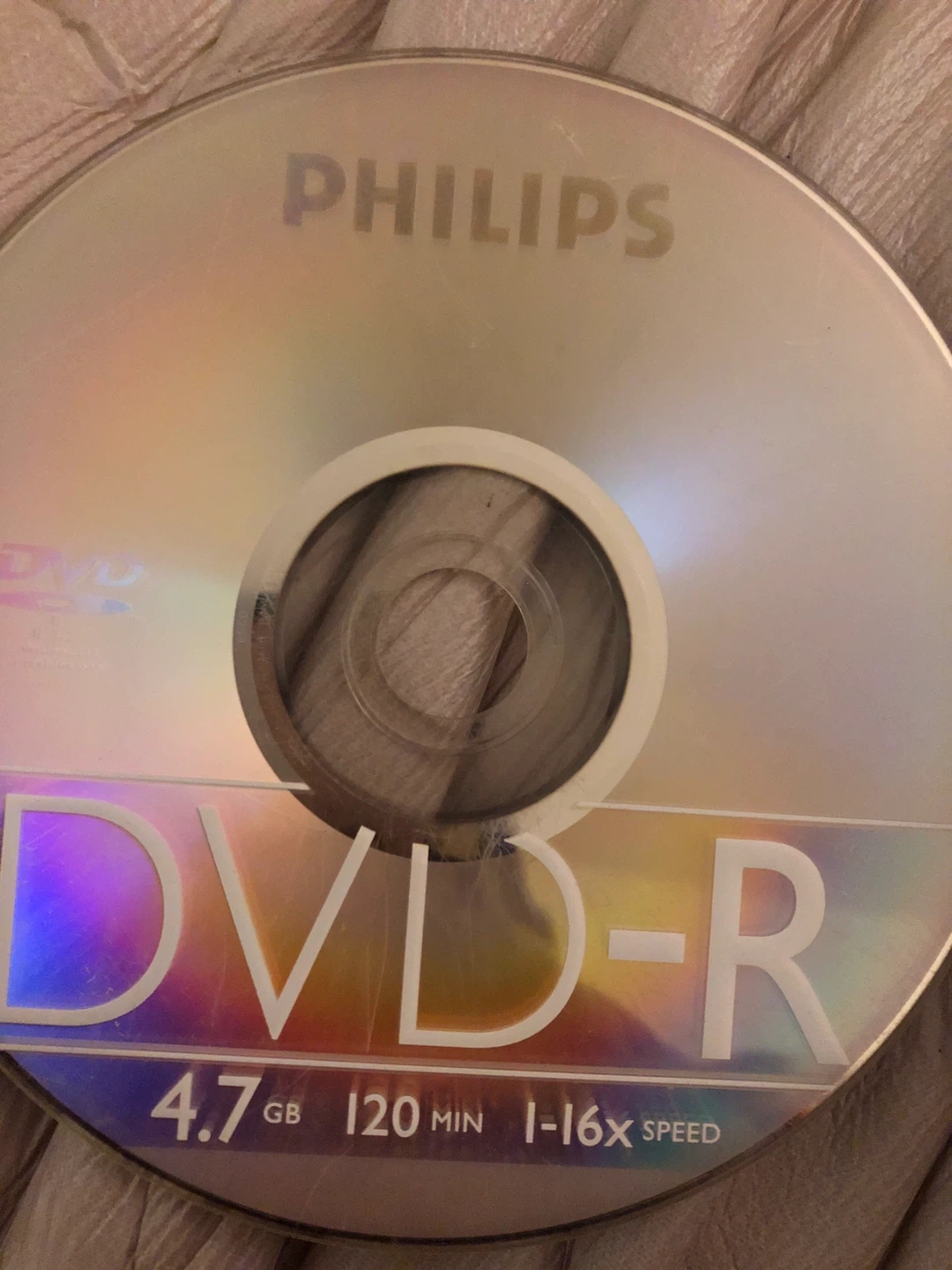 This is a Philips DVD-R disc. It holds 4.7 GB of data and has a recording time of 120 minutes. The disc supports speeds of 1-16x. Useful for archiving data or burning movies!
