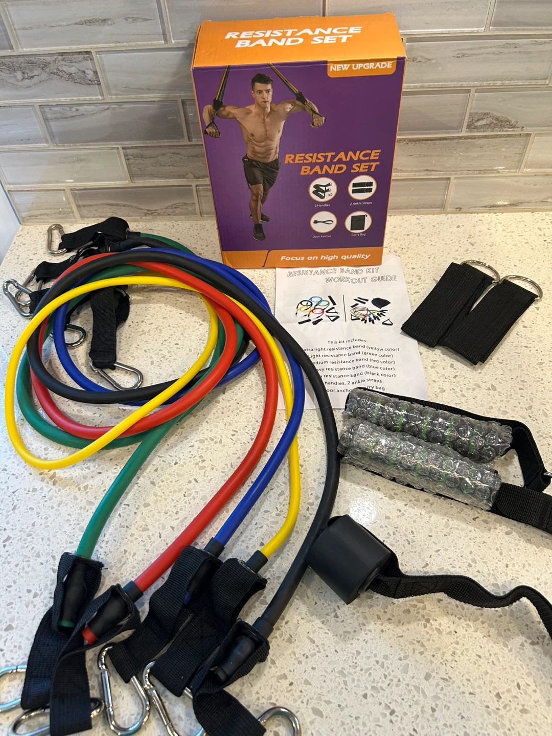 Selling a NEW resistance band set with 5 different colours!