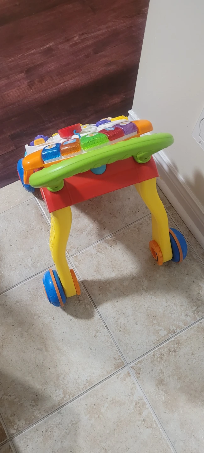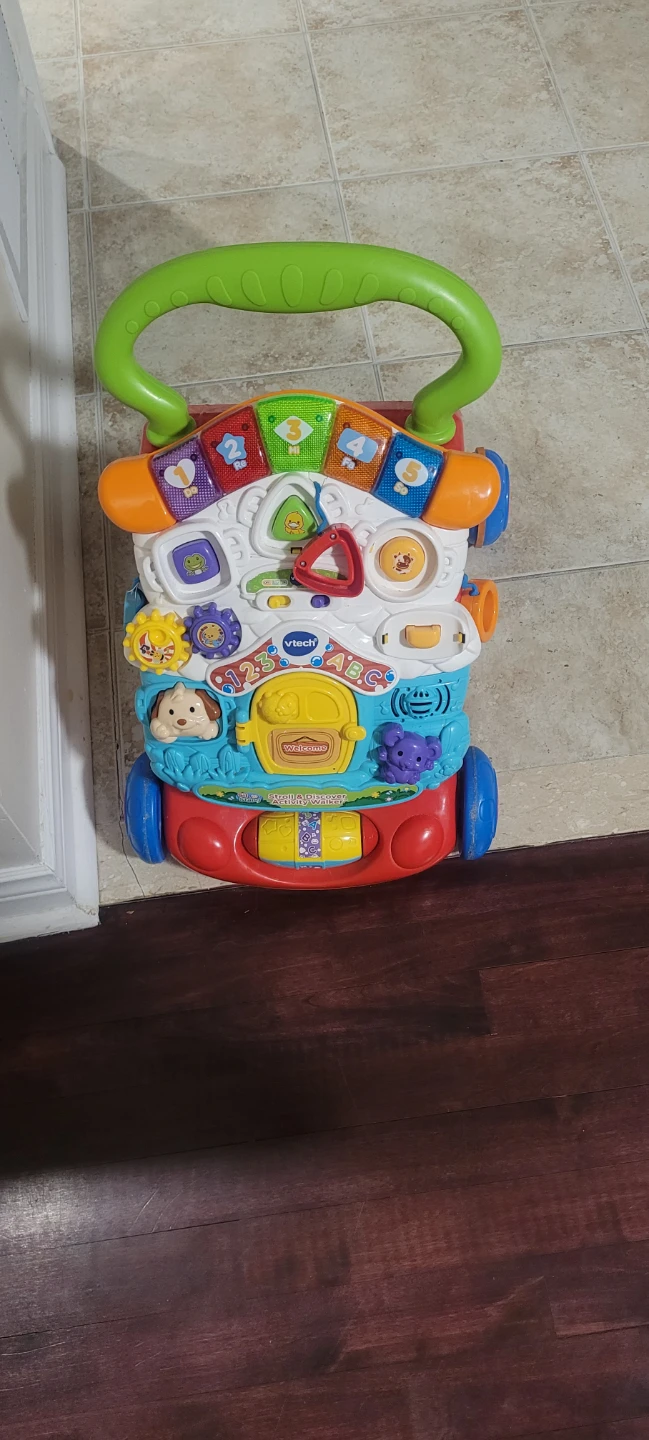 This VTech Sit-to-Stand Learning Walker is designed to grow with your child. It offers interactive activities for floor play and encourages them to walk. It's great for early development!