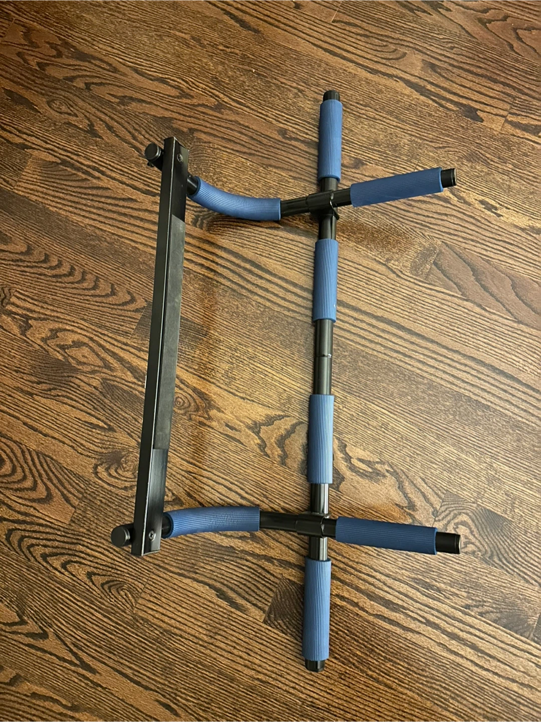 This doorway pull-up bar is designed for your home workouts. It features padded grips for comfort and a sturdy metal frame. Easy to set up and adjust for different door frames.