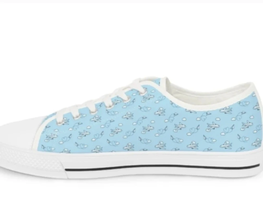 Light Blue Low-Top Sneakers with Airplane Print