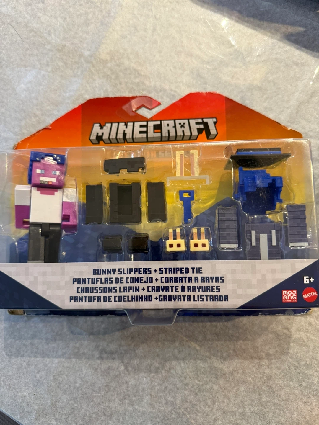 Selling a brand new Minecraft Crafter Series figure! This one features the Bunny Slippers + Striped Tie skin. It's still in its original packaging and ready for a new home. Suitable for ages 6+