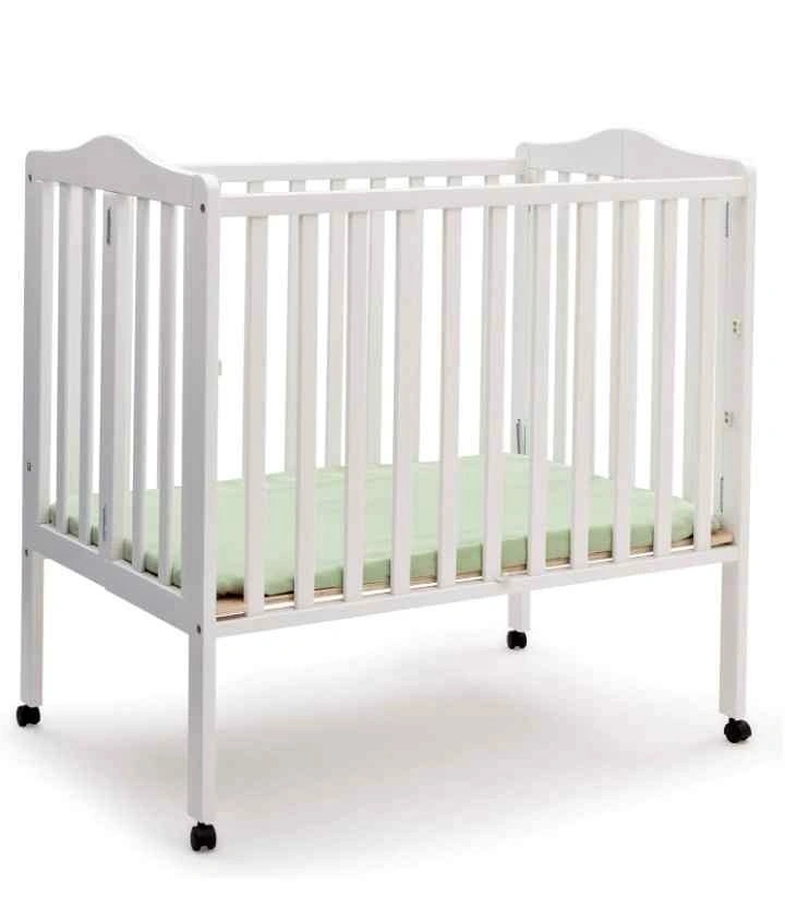 Beautiful white mini crib, practical and functional, perfect for newborns and infants.