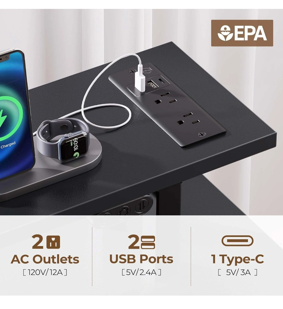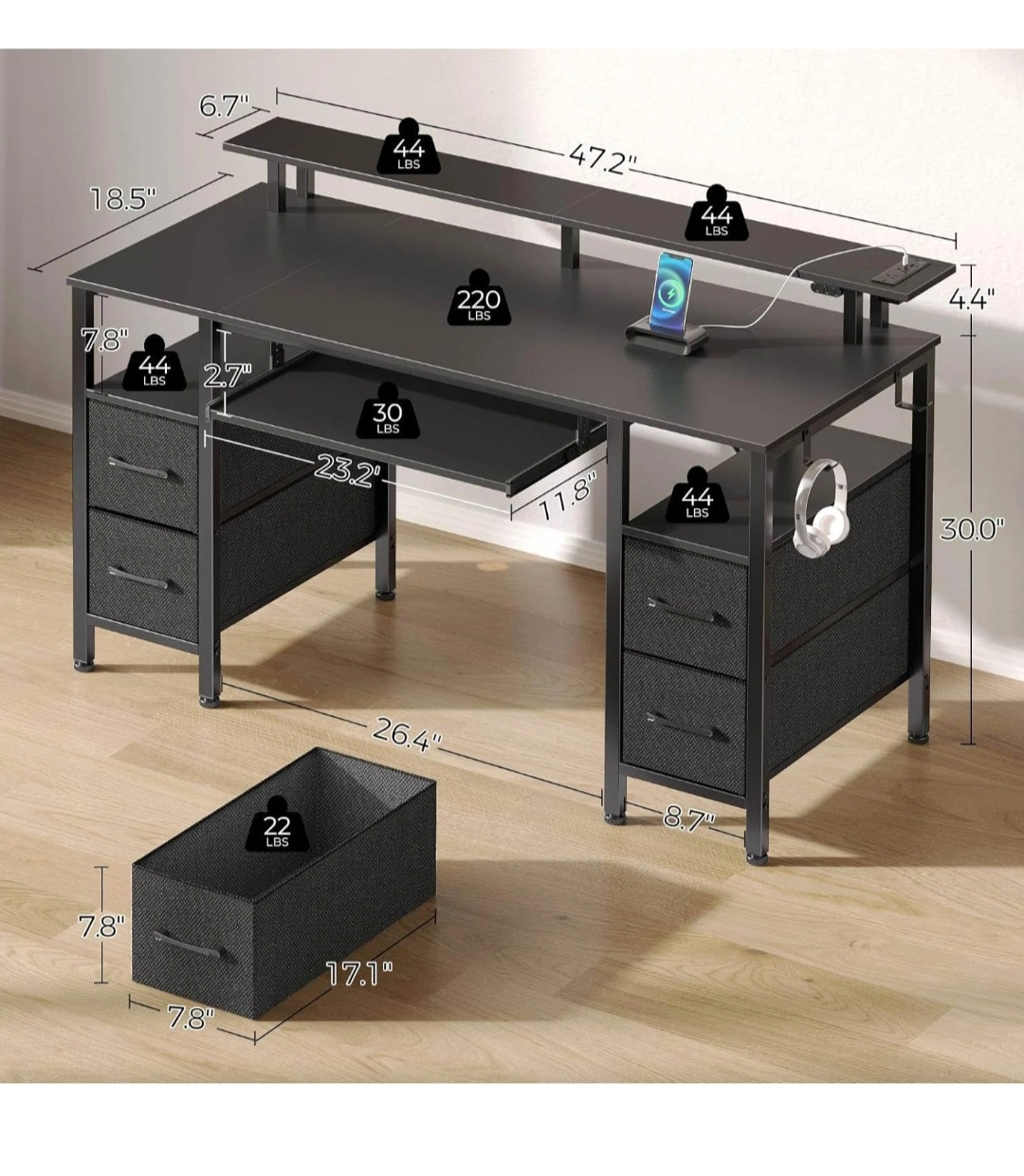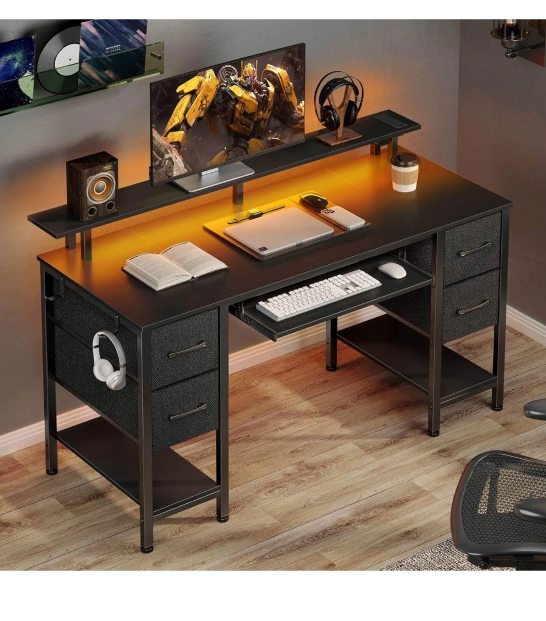 Computer Desk 47.2" with LED Lights & Power Outlets, Home Office Desk with 4 Drawers, Writing Desk with Keyboard Tray, Study Desk with Monitor Stand, Work Desk for Home Office, Black