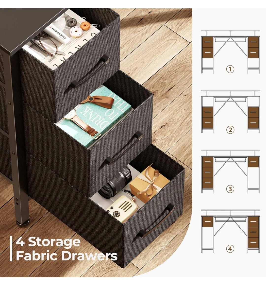 Computer Desk 47.2" with LED Lights & Power Outlets, Home Office Desk with 4 Drawers, Writing Desk with Keyboard Tray, Study Desk with Monitor Stand, Work Desk for Home Office, Black