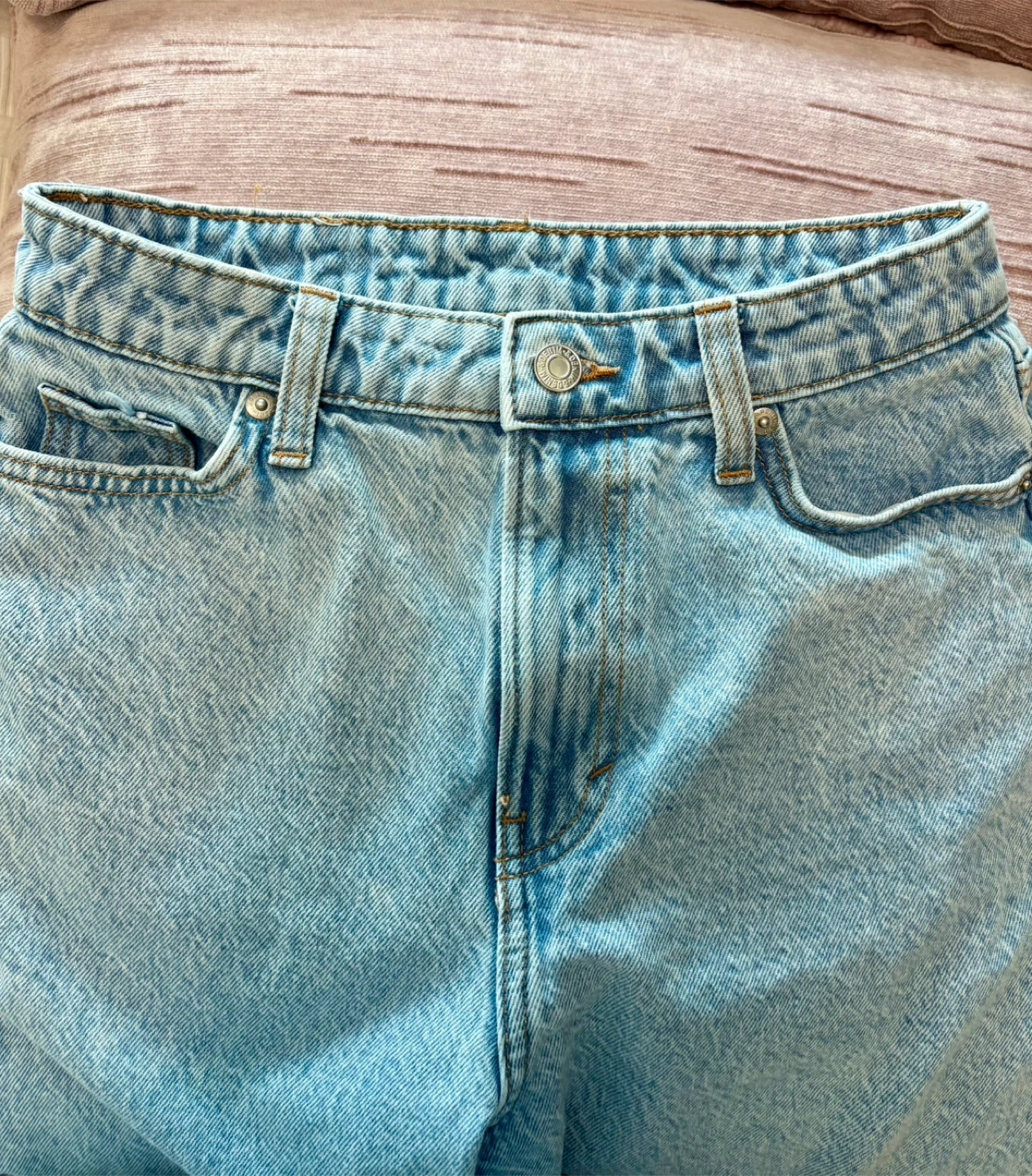 Selling a pair of H&M jeans! They're a light wash denim, size US 2. The style is 'Barrel' with a loose fit and high waist. Perfect for a casual look!